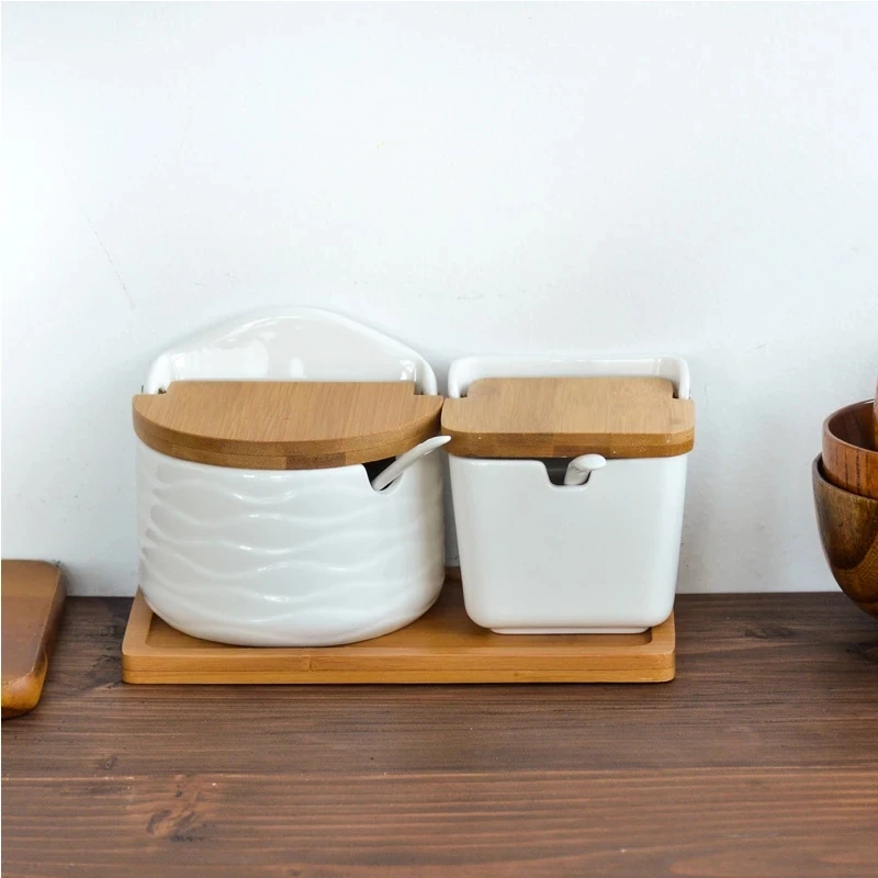 Креативная керамическая кухня в скандинавском стиле, Набор банок для приправ деревянная крышка, солонка для приправ, для кувшина органайзера канистра, кухонный инструмент