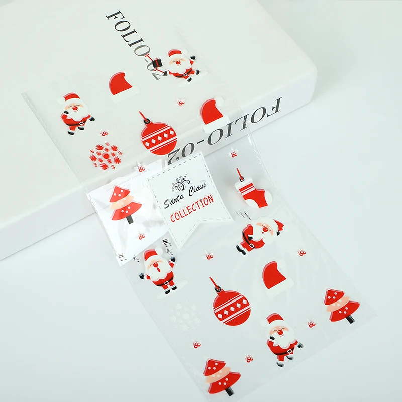 50 шт./упаковка для рождественских конфет, ПВХ прозрачная подарочная сумка, Новогодние рождественские украшения, подарочная упаковка для выпечки печенья