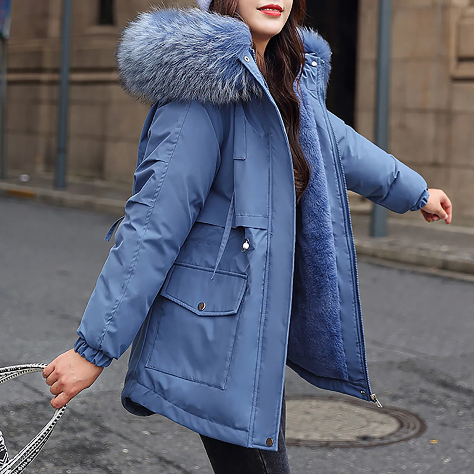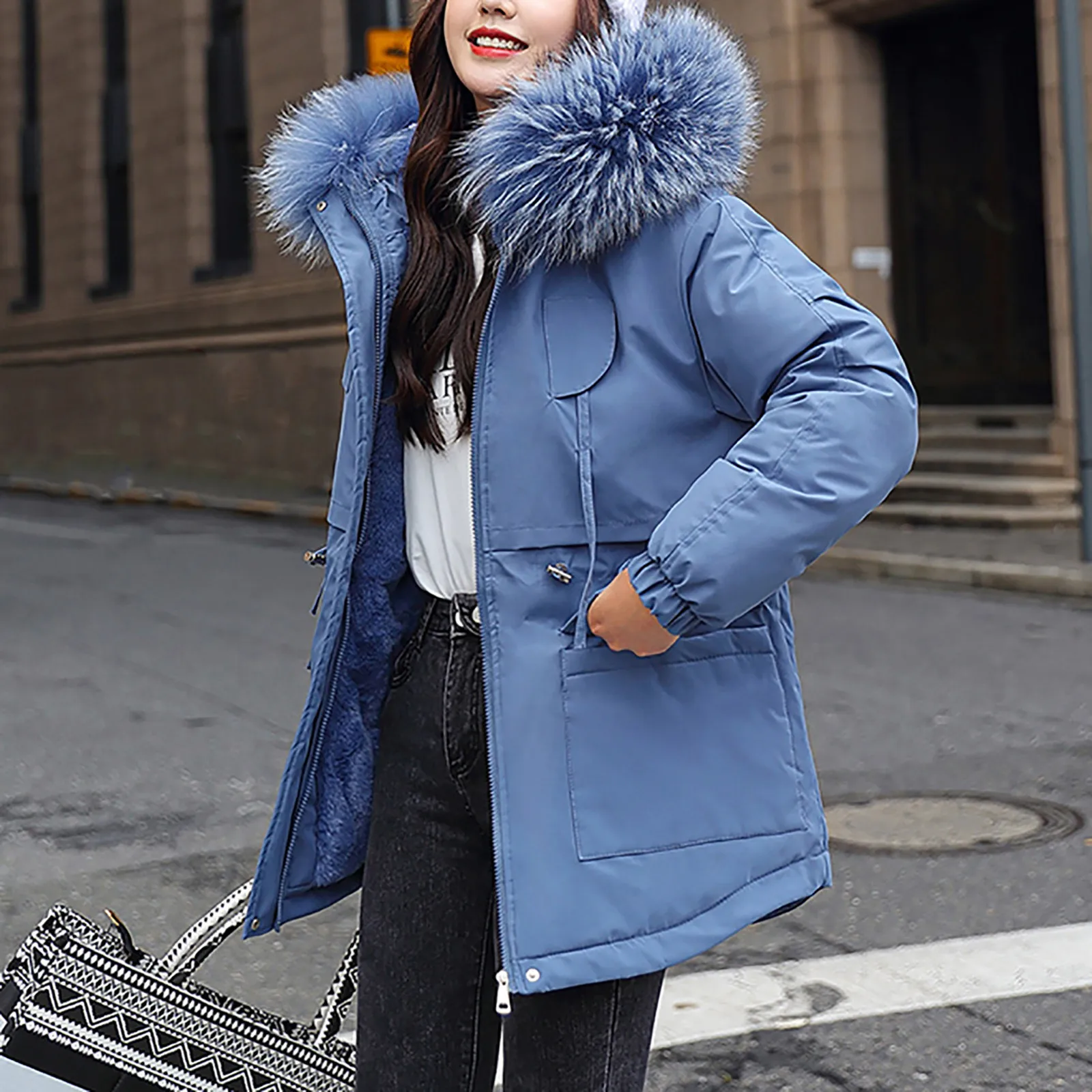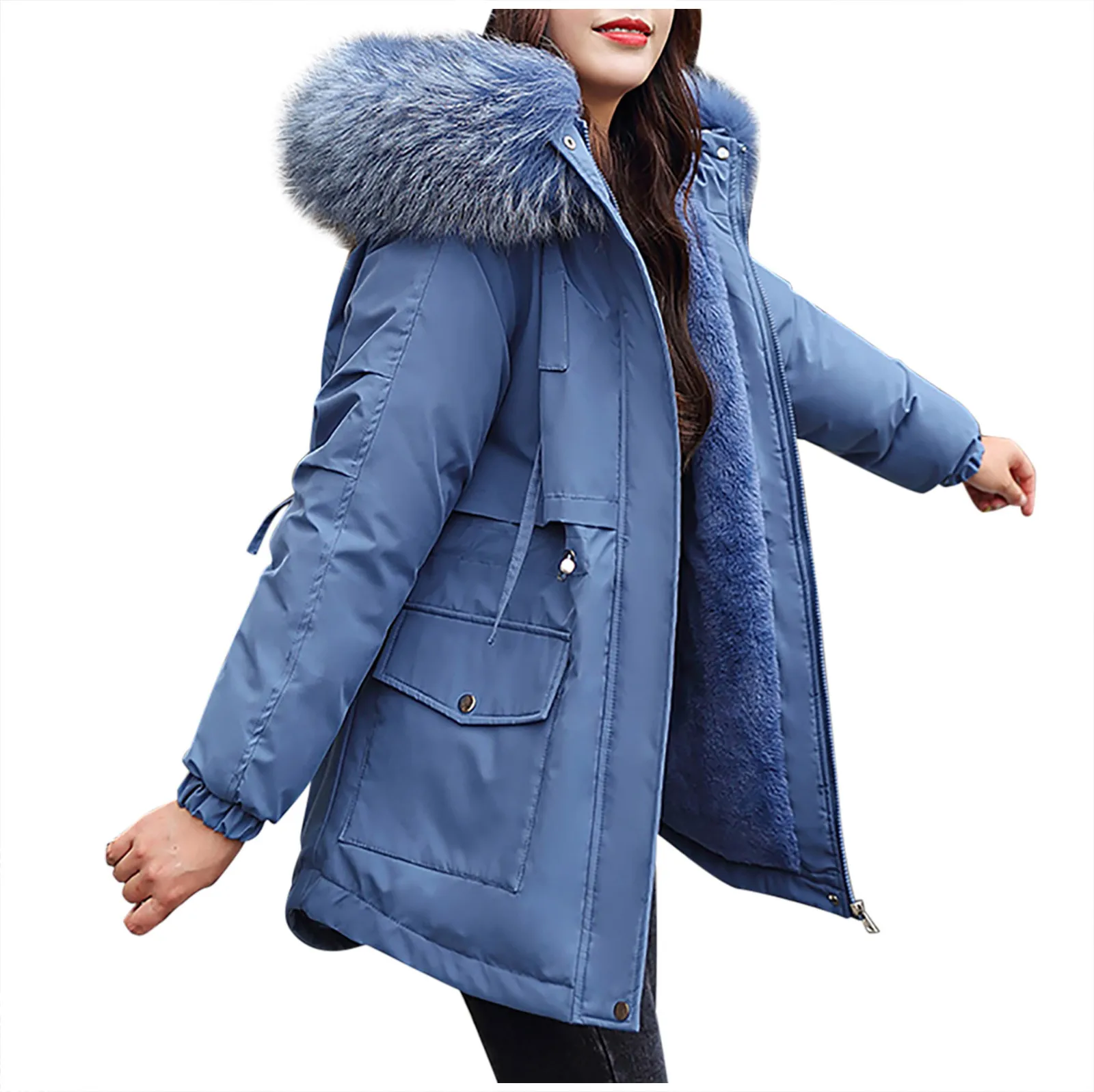 Женское зимнее утолщенное и бархатное сохраняющее тепло повседневное пальто с шапкой