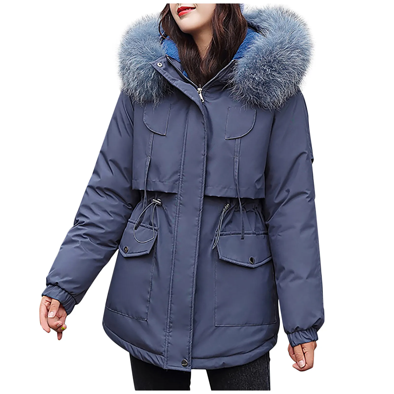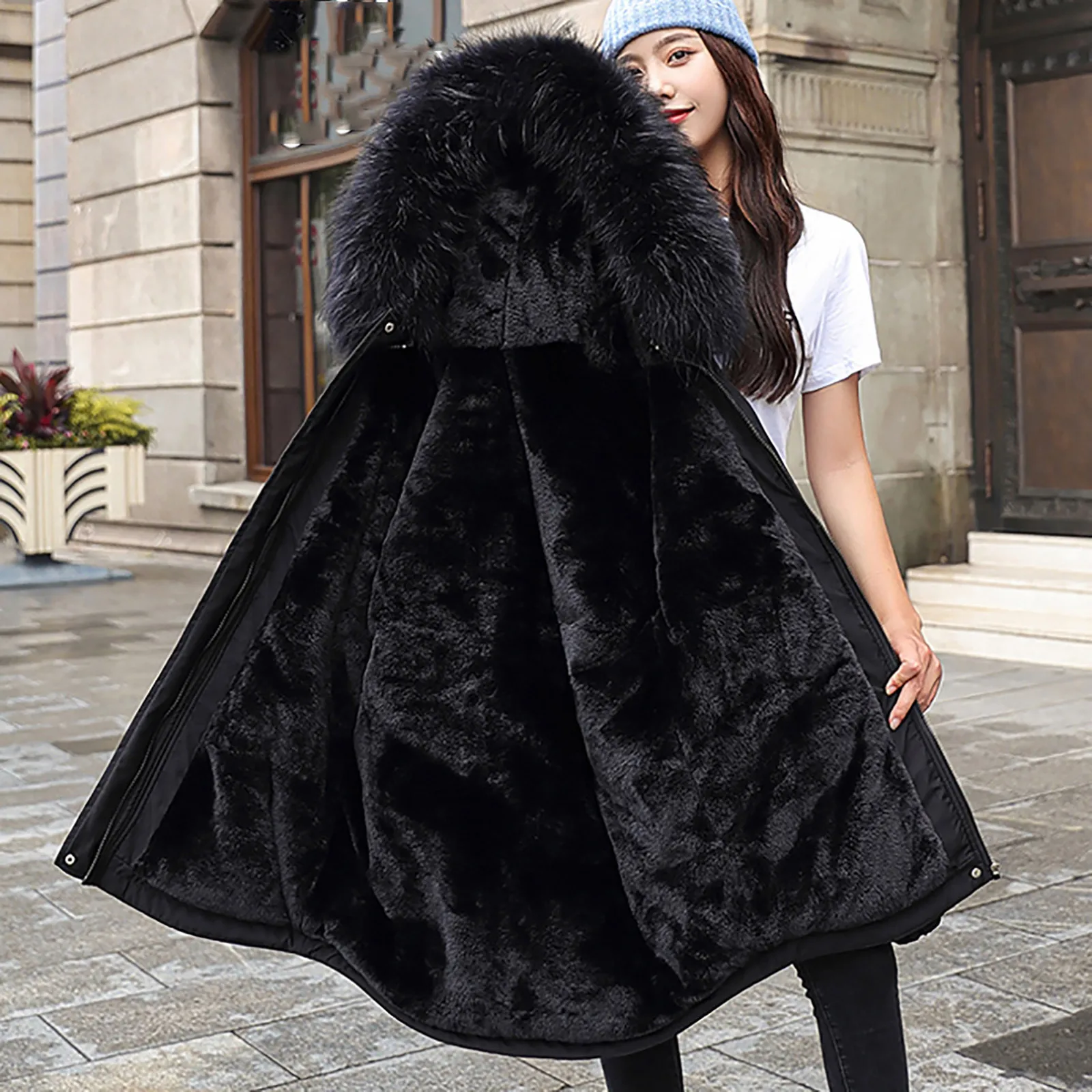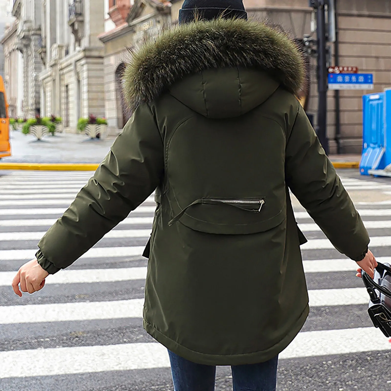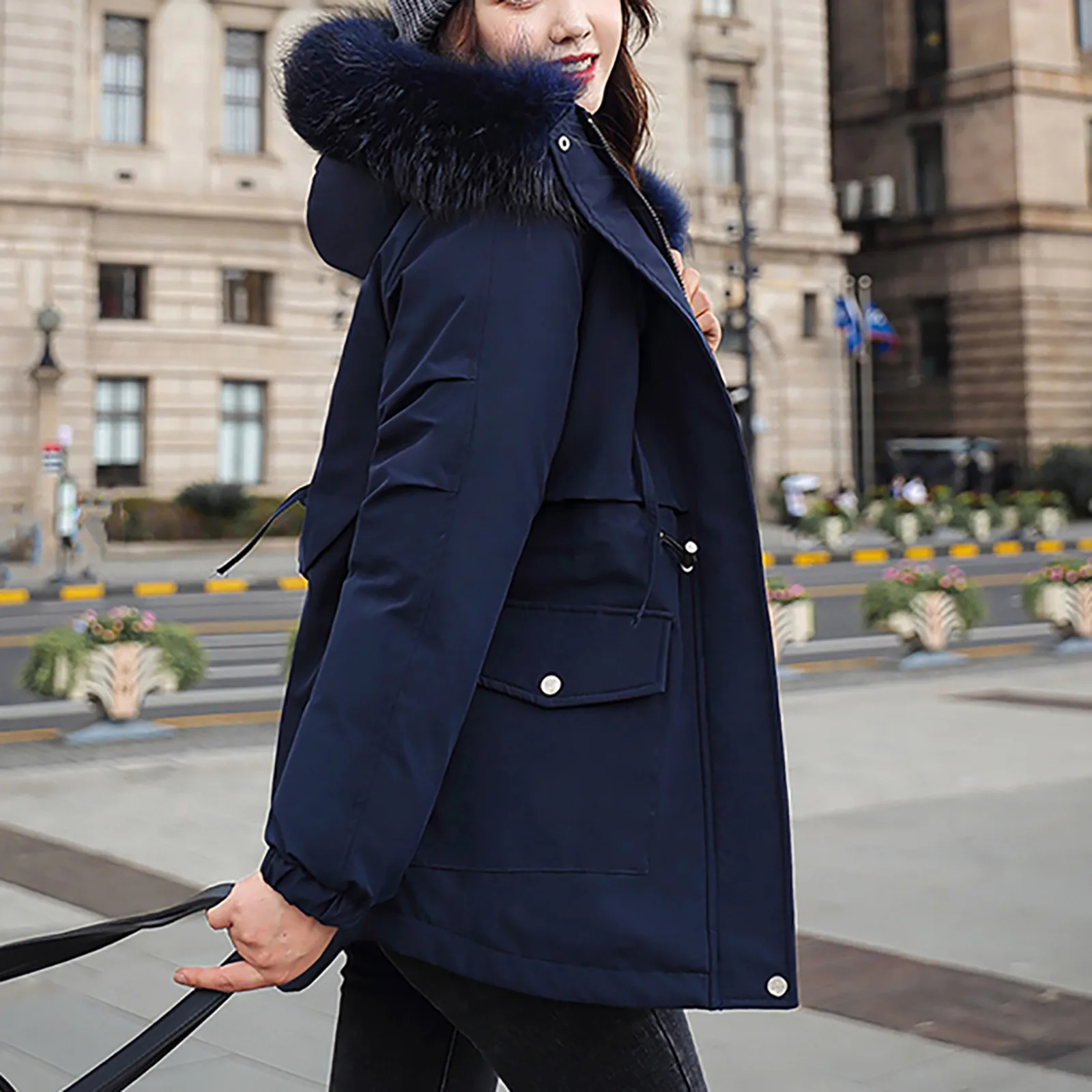 Женское зимнее утолщенное и бархатное сохраняющее тепло повседневное пальто с шапкой