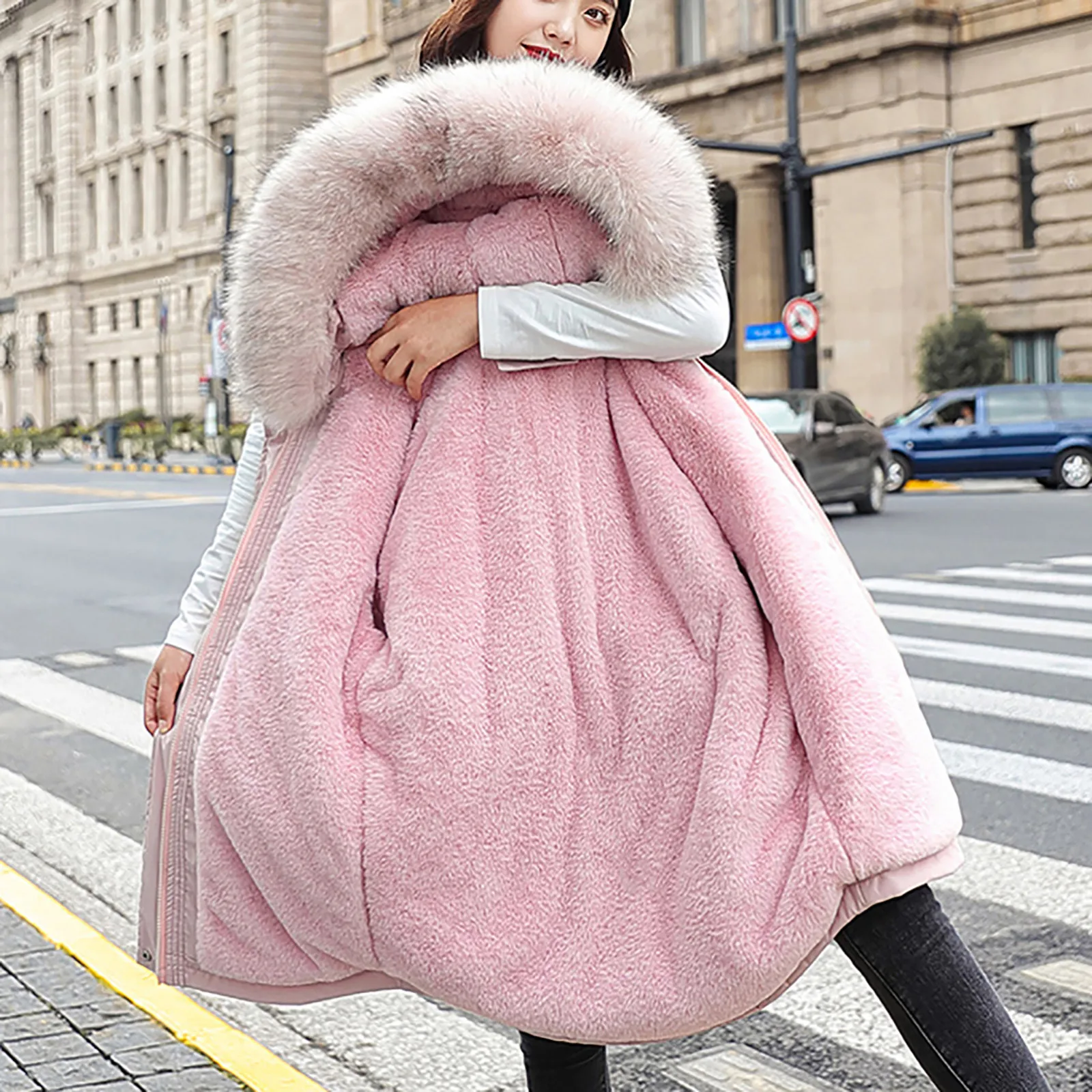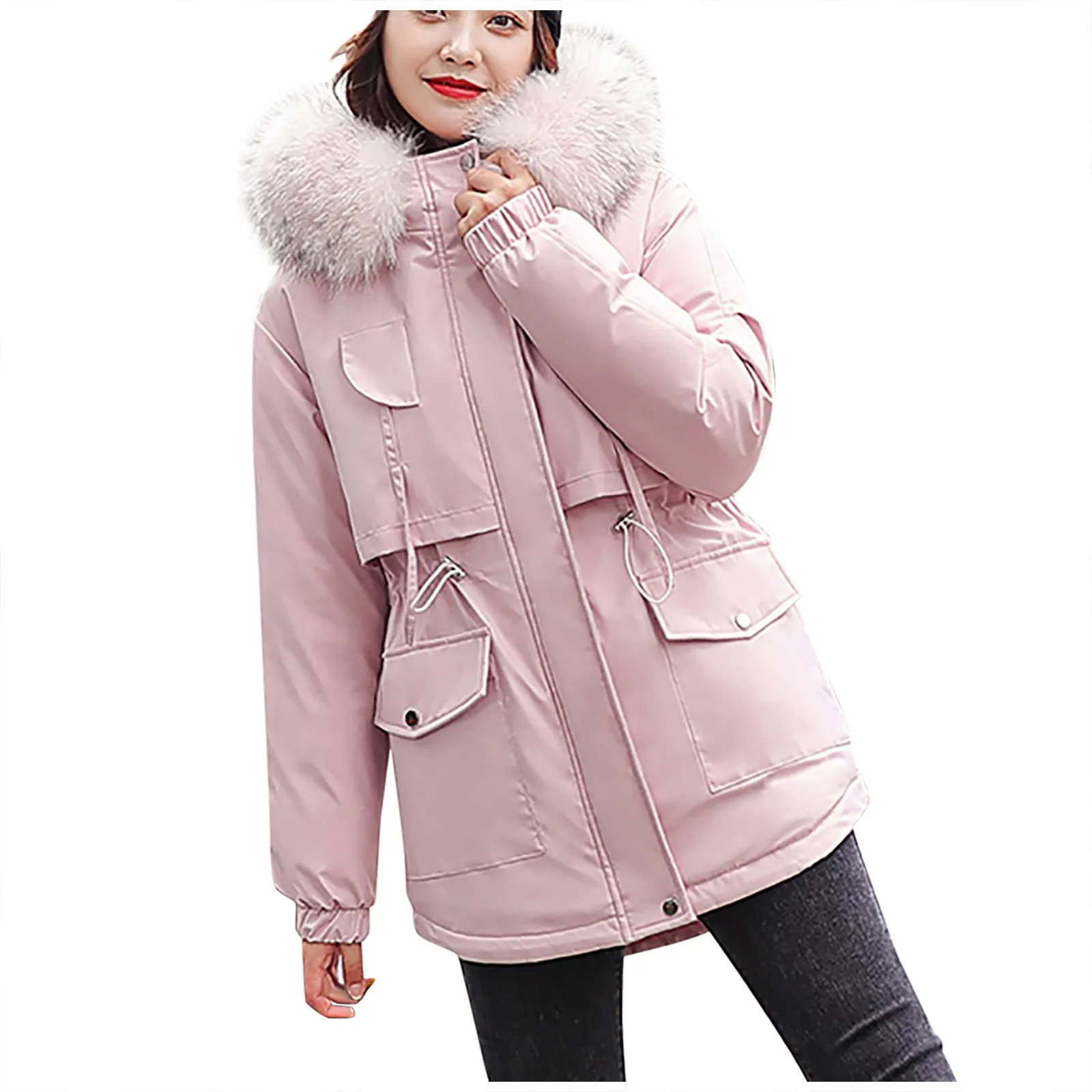 Зимняя куртка ZQLZ размера плюс, женская, с капюшоном, розовая, дли...