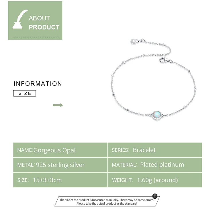 Браслет-цепочка женский из серебра 925 пробы с опалом