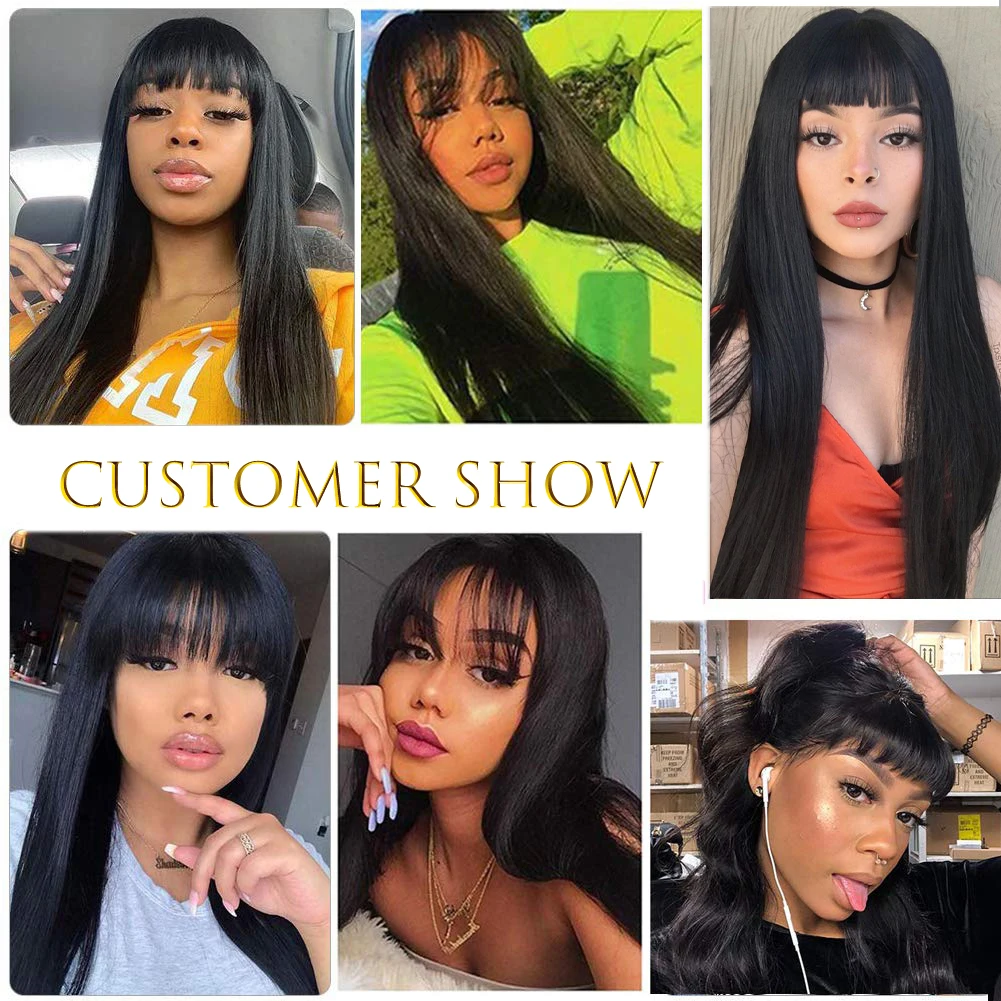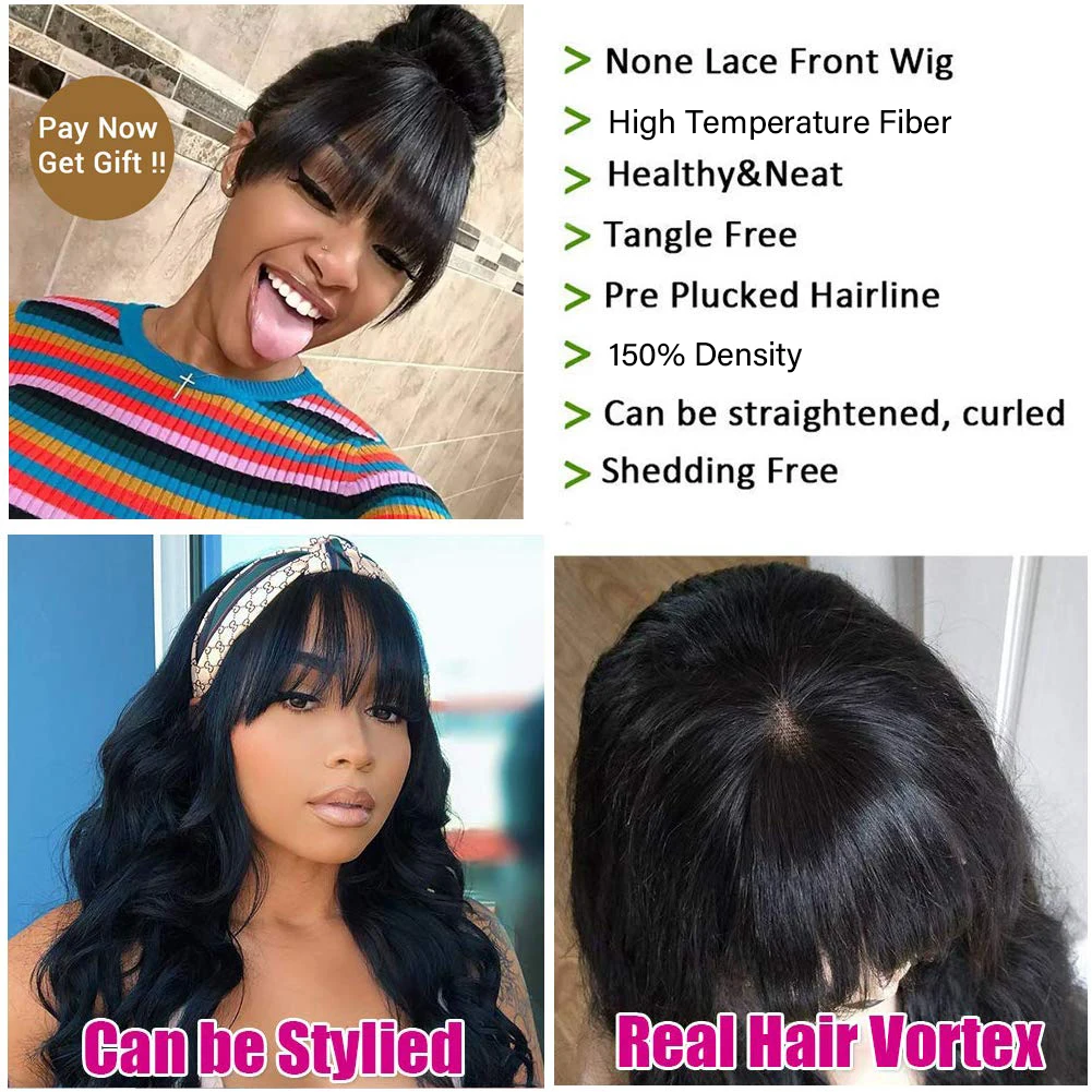 Парики из натуральных синтетических волос черного цвета с челкой, Длинные прямые, предварительно выщипанные, высокотемпературный парик, X-TRESS