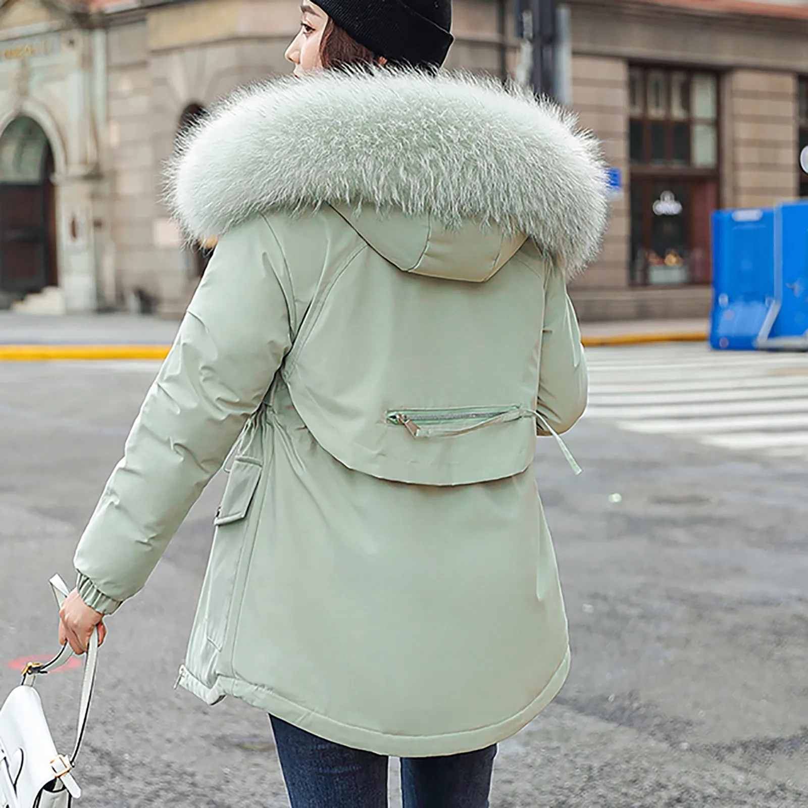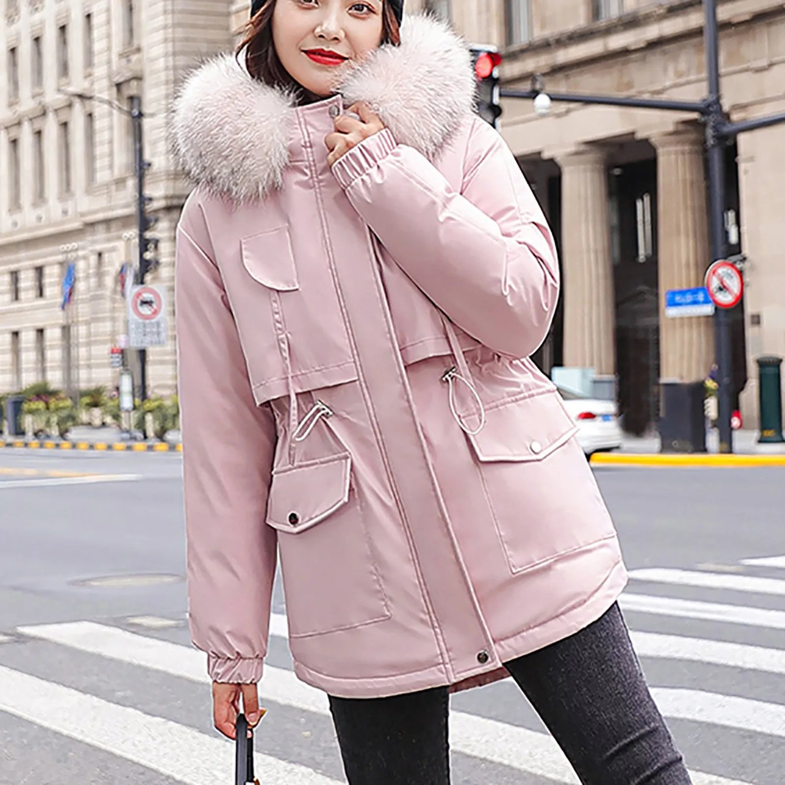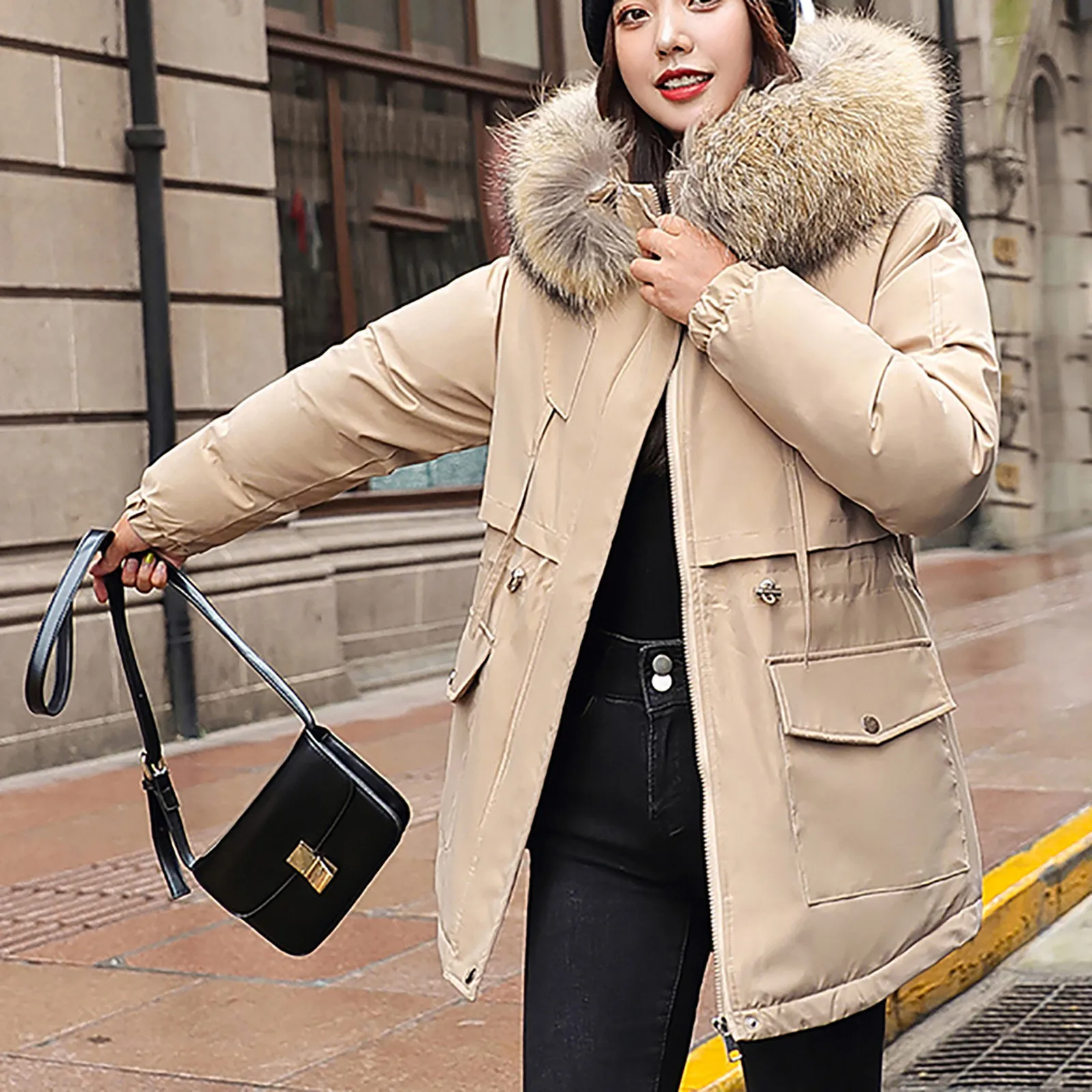 2020 новые хлопковые лайнер Parker парка модная Регулируемая посадка на талии; Зимняя одежда с меховым воротником зимняя куртка для женщин средней длины, парка с капюшоном, длинная куртка с капюшоном, пальто