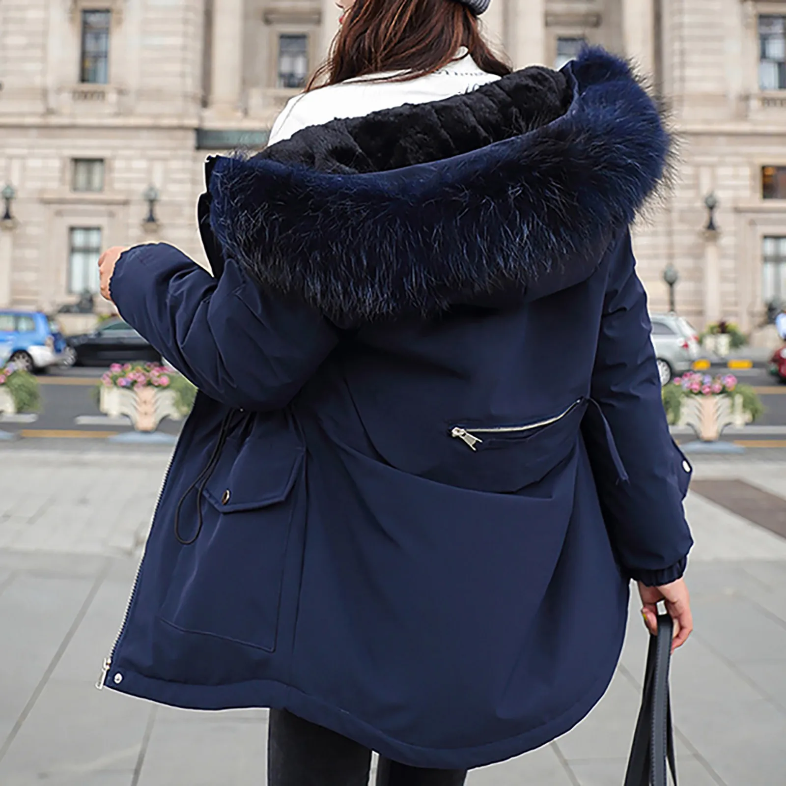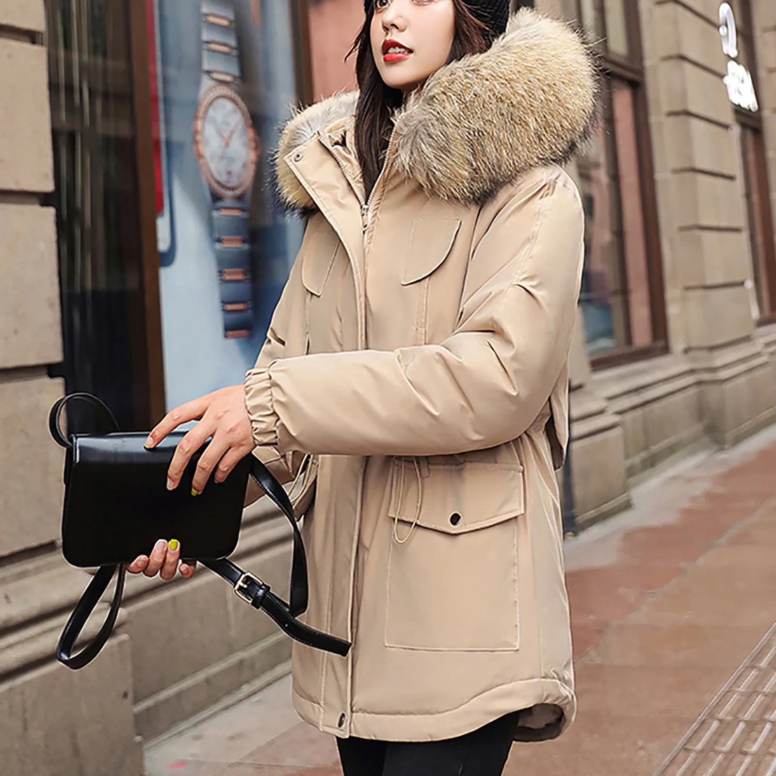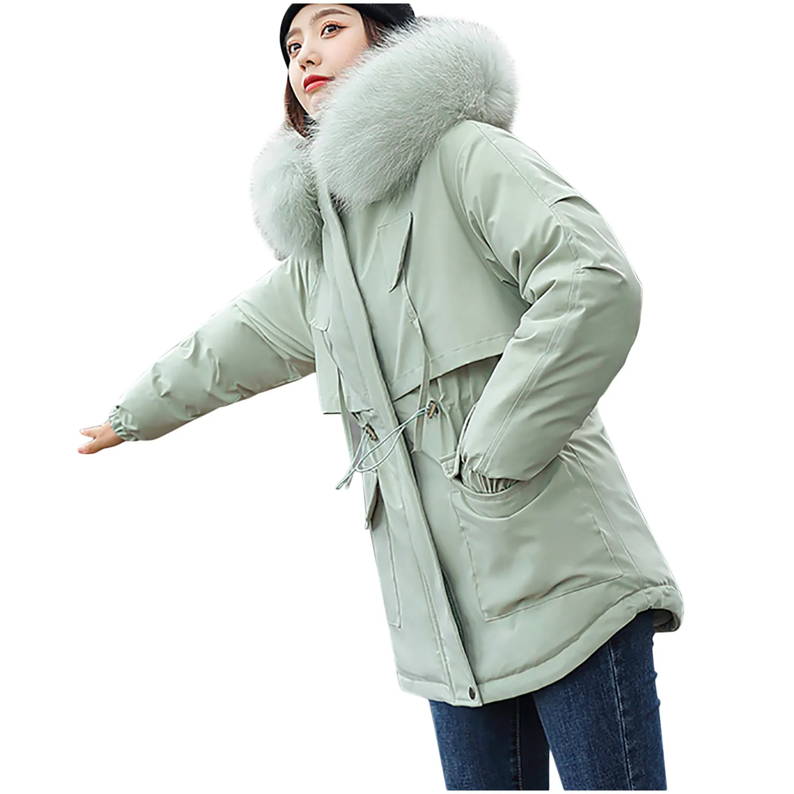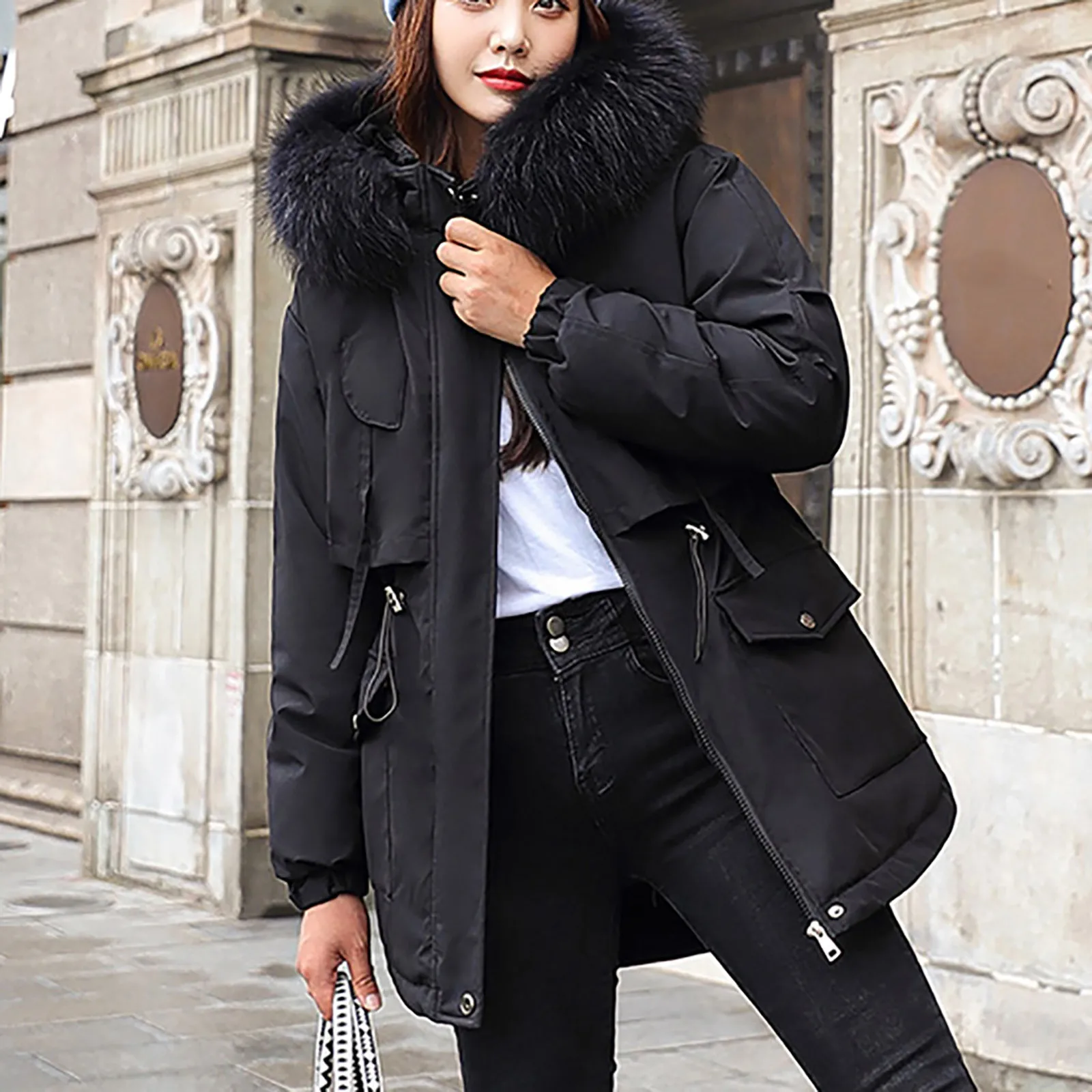 2020 новые хлопковые лайнер Parker парка модная Регулируемая посадка на талии; Зимняя одежда с меховым воротником зимняя куртка для женщин средней длины, парка с капюшоном, длинная куртка с капюшоном, пальто