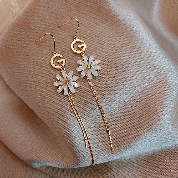 Новый Япония и Южная Корея фрукты моды с длинными ушами, для ногтей темперамент белого цвета с рисунком "Подсолнух" серьги женские серьги Пуссеты Серьги популярные серьги