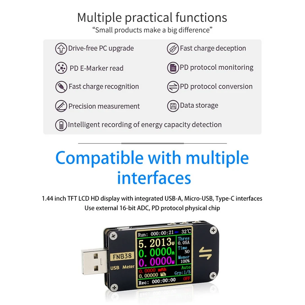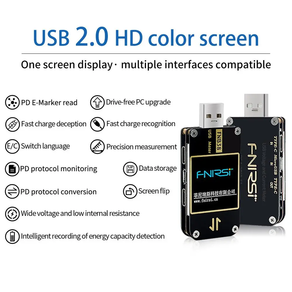 HD USB-тестер FNB38 с ЖК-дисплеем, тестер напряжения тока, триггеры заряда QC2.0, триггер быстрой зарядки, USB-тестер