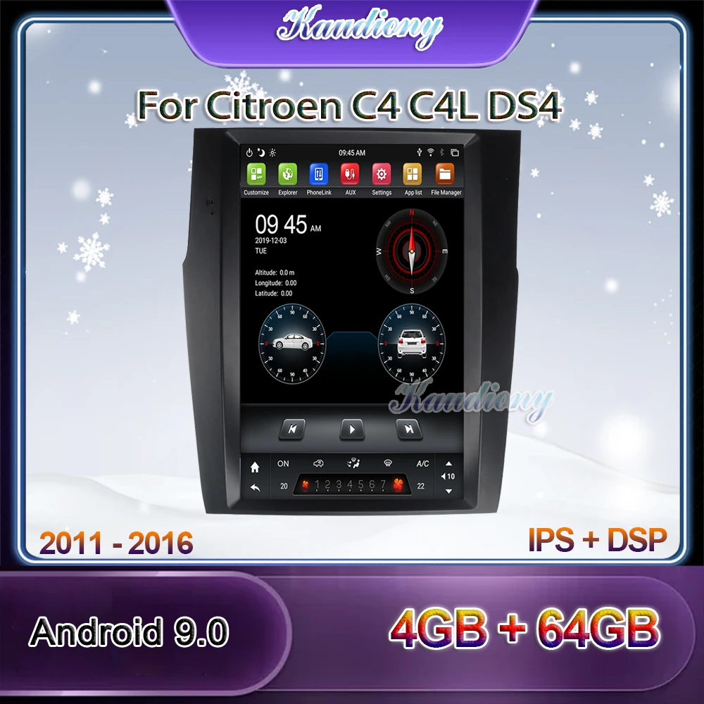 Kudiony 12,1 "Тесла стиль вертикальный экран Android 9,0 автомобильное радио для Citroen C4 C4L DS4 автомобильный Dvd плеер Авто GPS Навигация BT