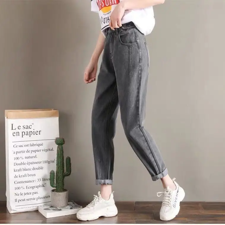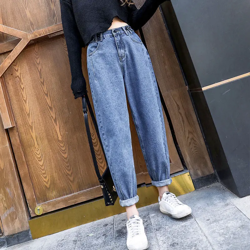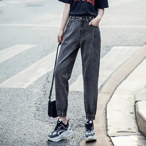 Джинсы женские тонкие с завышенной талией, свободные штаны с укороченной талией, с завязкой на стопах, брюки в стиле Харлан для студентов