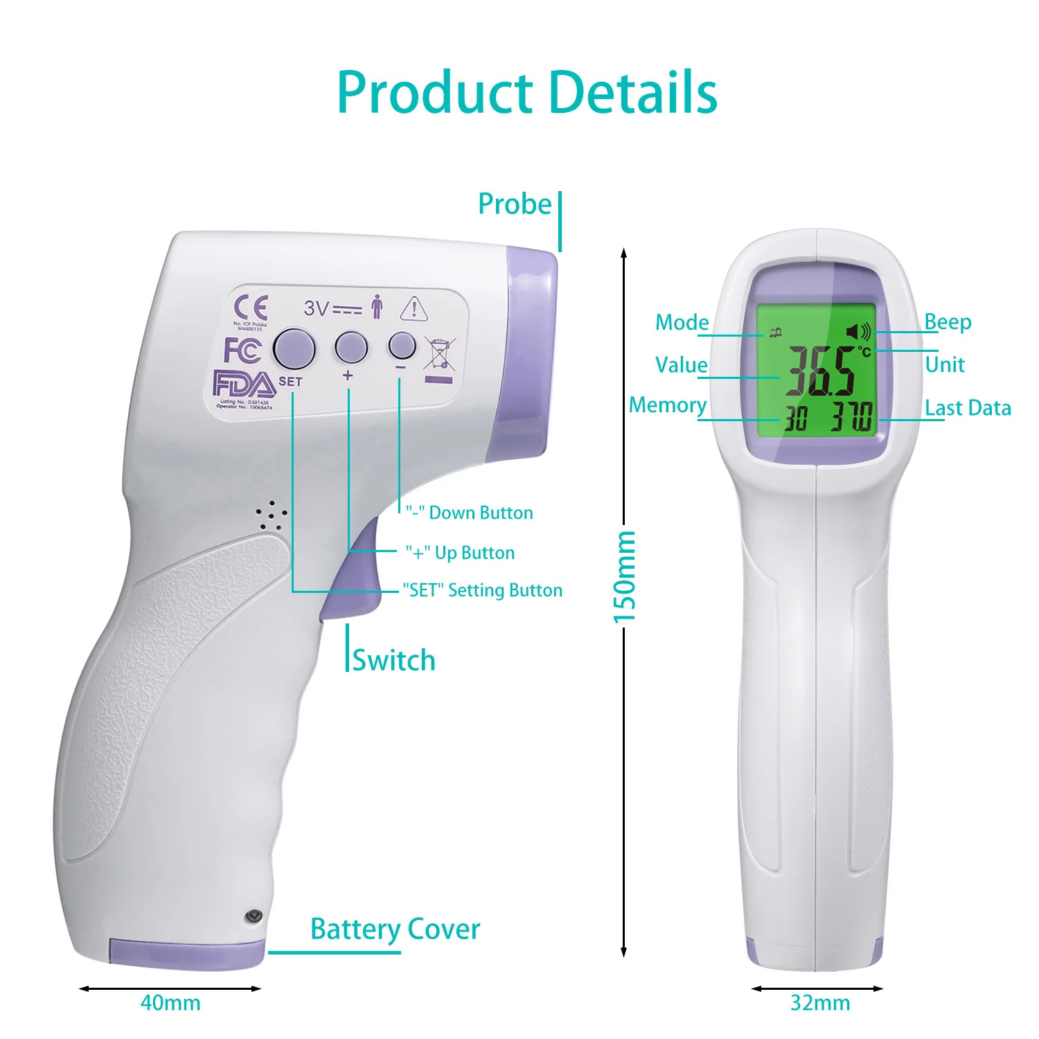 Бесконтактное измерение:Портативный цифровой инфракрасный термометр Температурный пистолет. Избегайте касания кожи, удобно измеряйте температуру и не подвергайте опасности перекрестной инфекции.