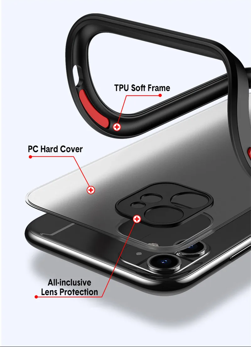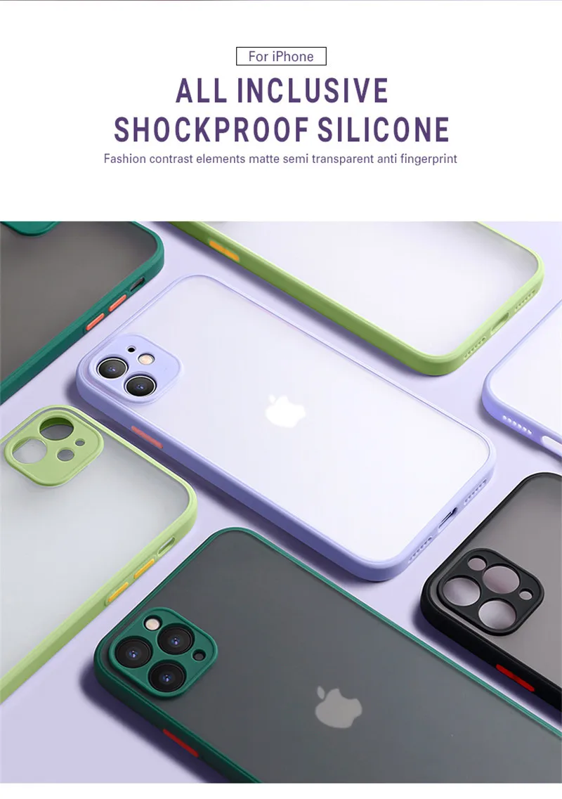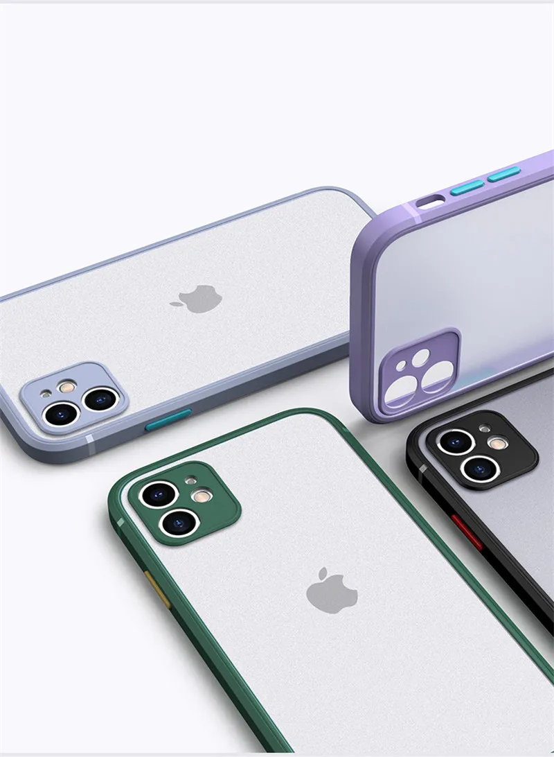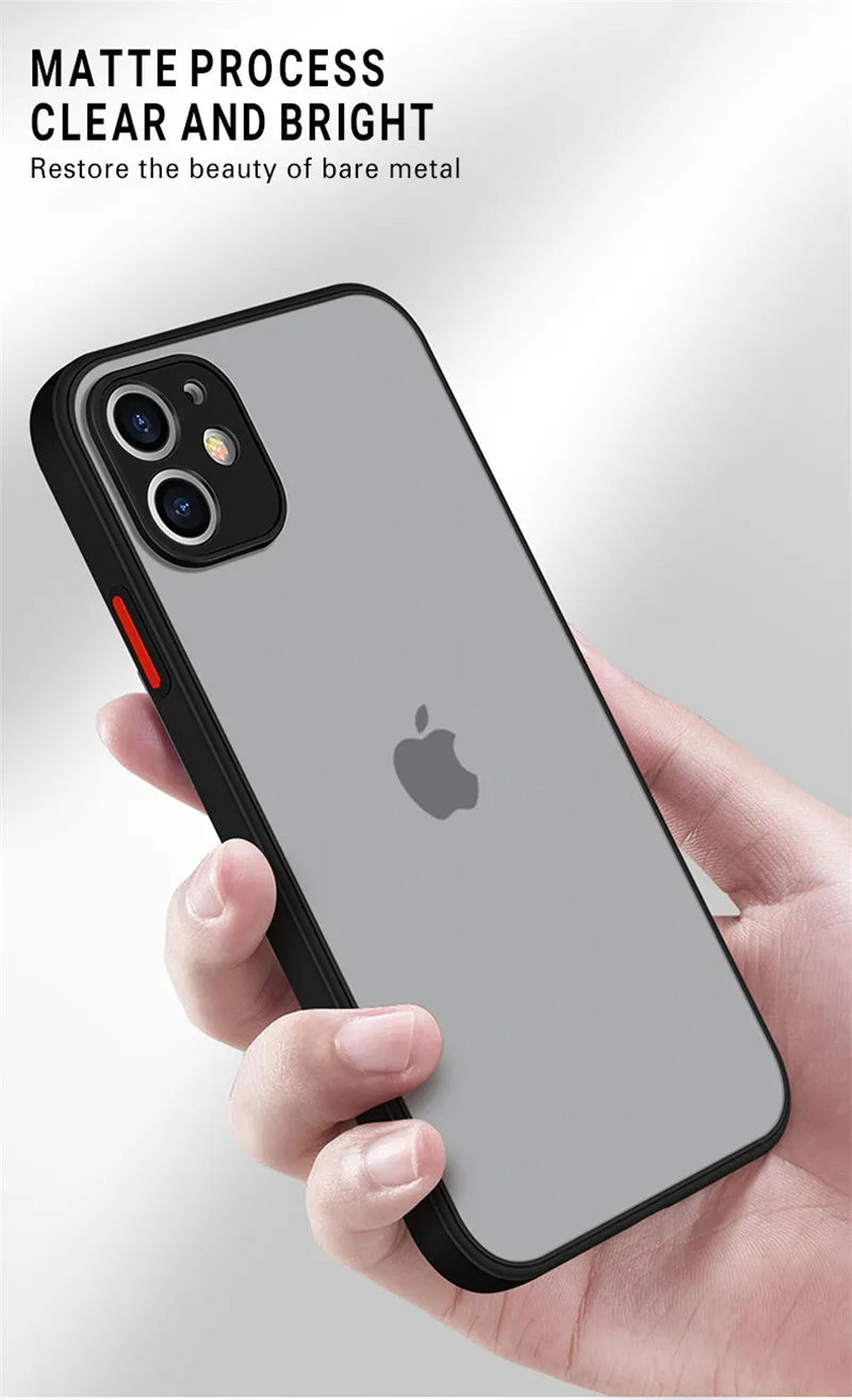 Противоударный чехол для iPhone 12, 11, 13 Pro Max, Mini, XS, XR, X, 8, 7 Plus, SE2, силиконовая рамка, Прозрачный матовый чехол