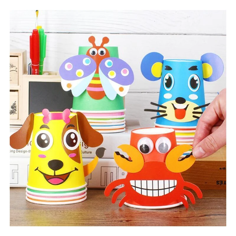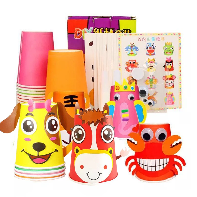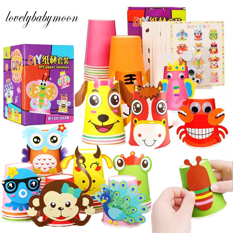 12 шт.компл. детские бумажные стаканчики ручной работы с животными Набор наклеек материал для детского сада школьное искусство детские образовательные игрушки