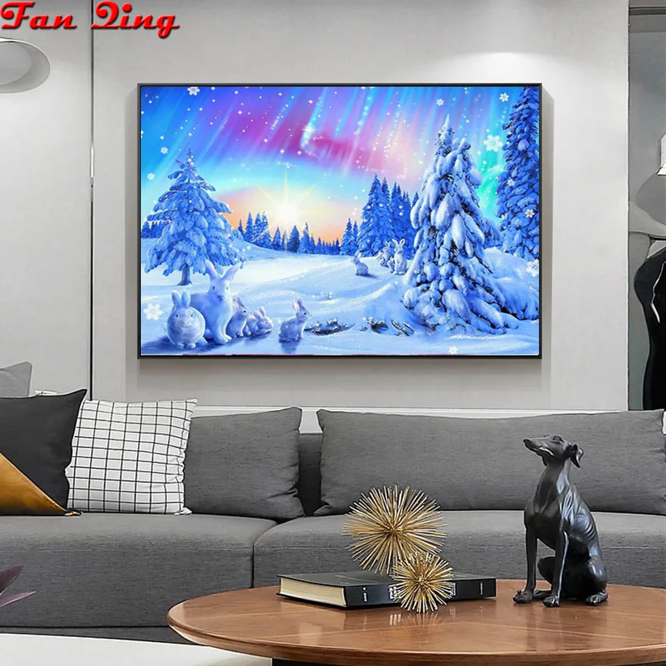 Алмазная живопись "сделай сам", зимняя снежная сцена, Аврора, полноразмерная/круглая картина, природный пейзаж, 5D Вышивка крестиком, мозаика, искусство