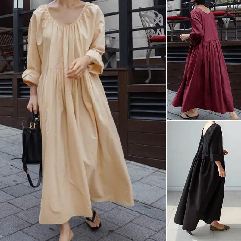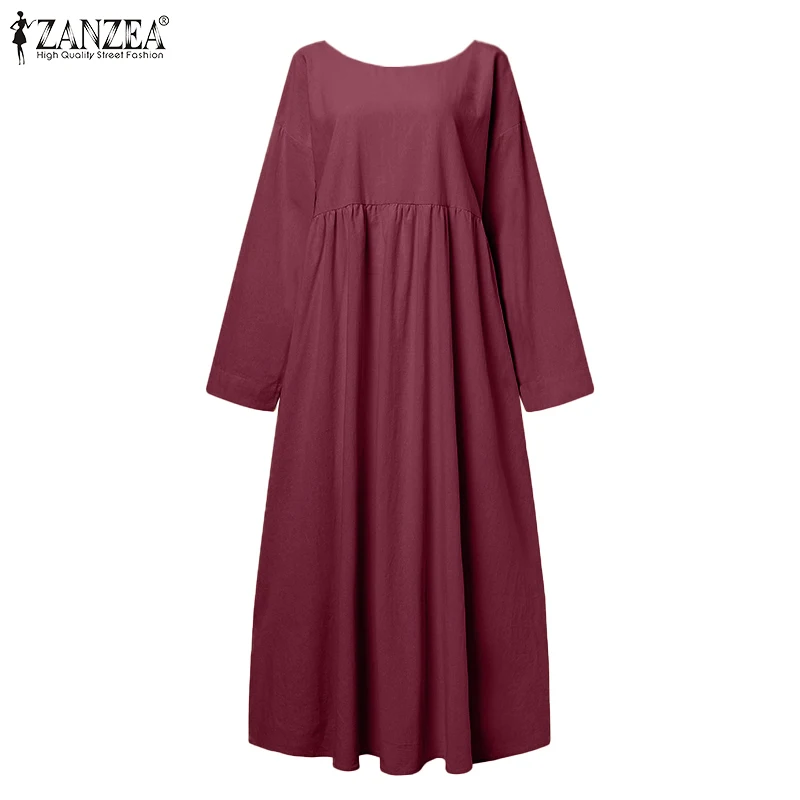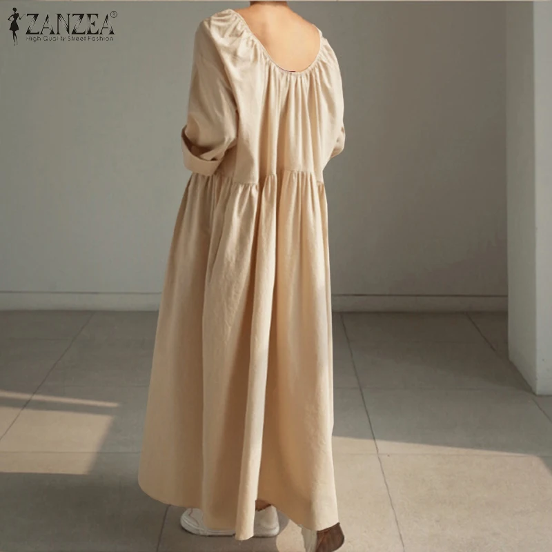 Длинные Макси платья для женщин 2022 женский ретро Vestidos ZANZEA весенний сарафан с длинным рукавом Повседневный однотонный халат Femme оверсайз
