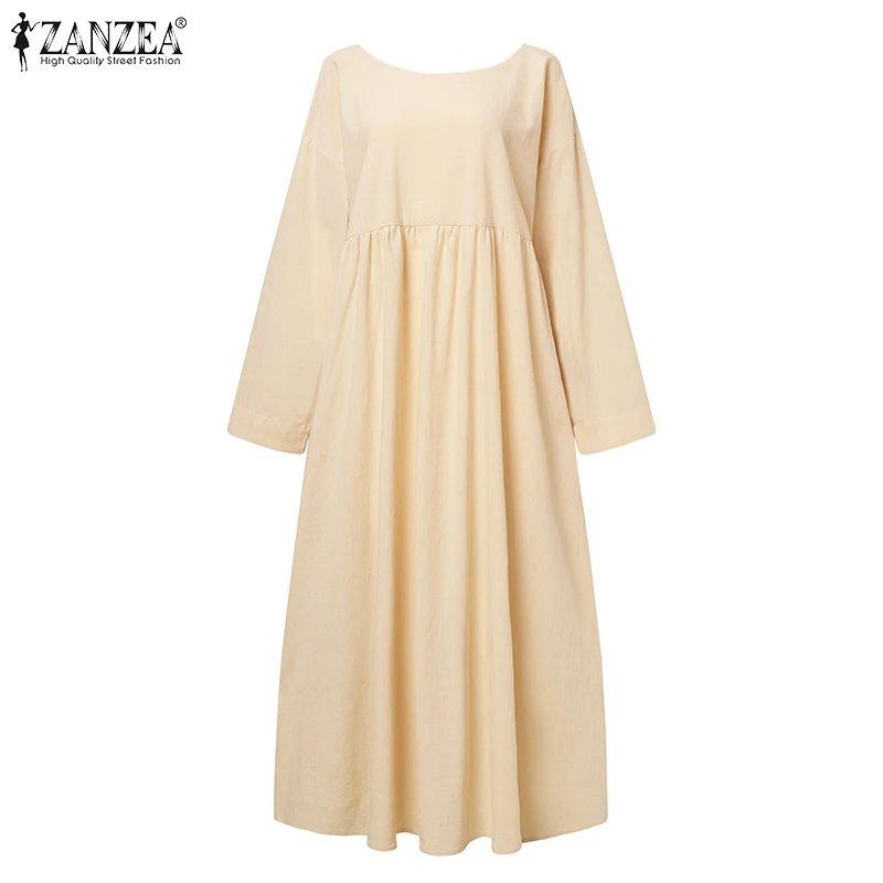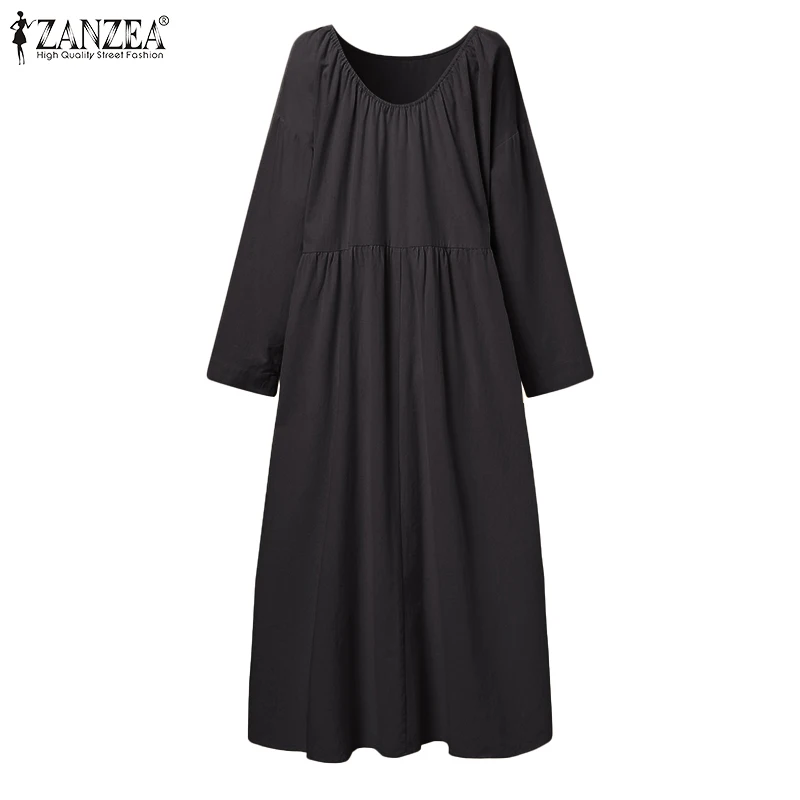Платье ZANZEA женское с длинным рукавом, повседневное Длинное свобо...