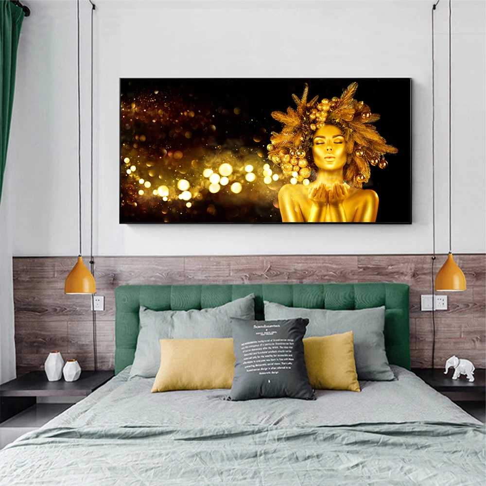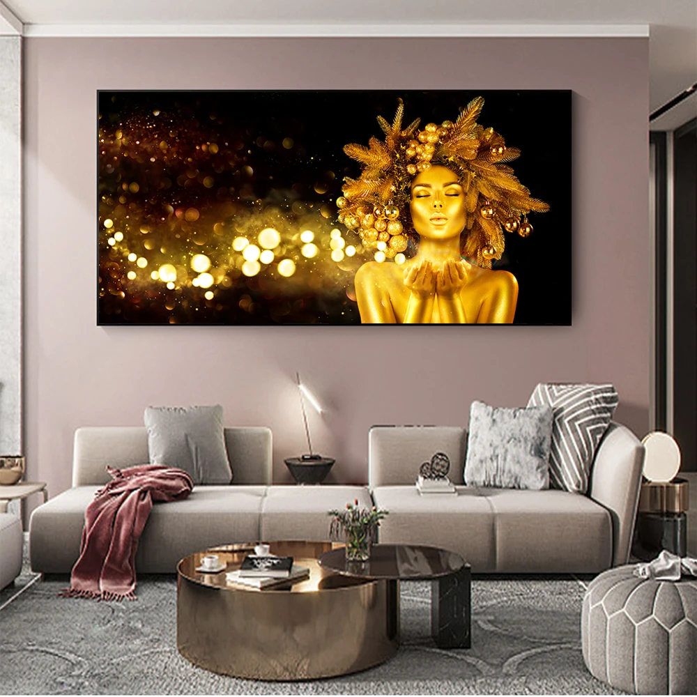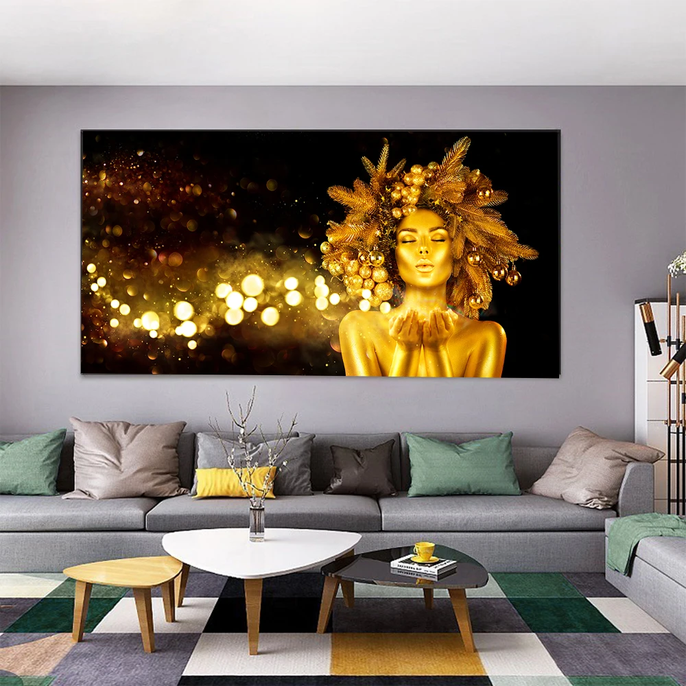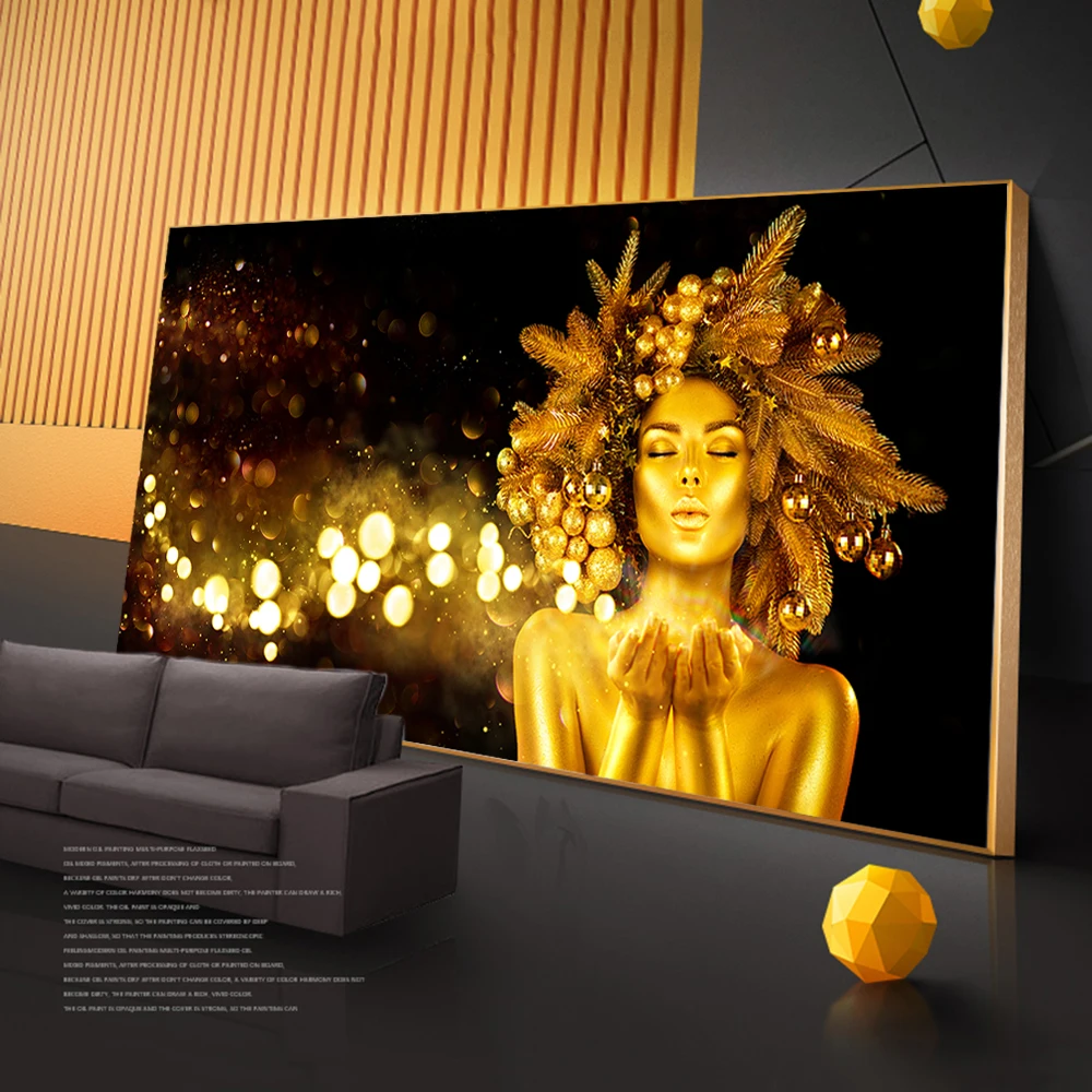 Рождественские Золотые женские хранения ювелирных украшений из плотной ткани настенные картины художественные плакаты и принты черного цвета женские Настенный декор фотографии