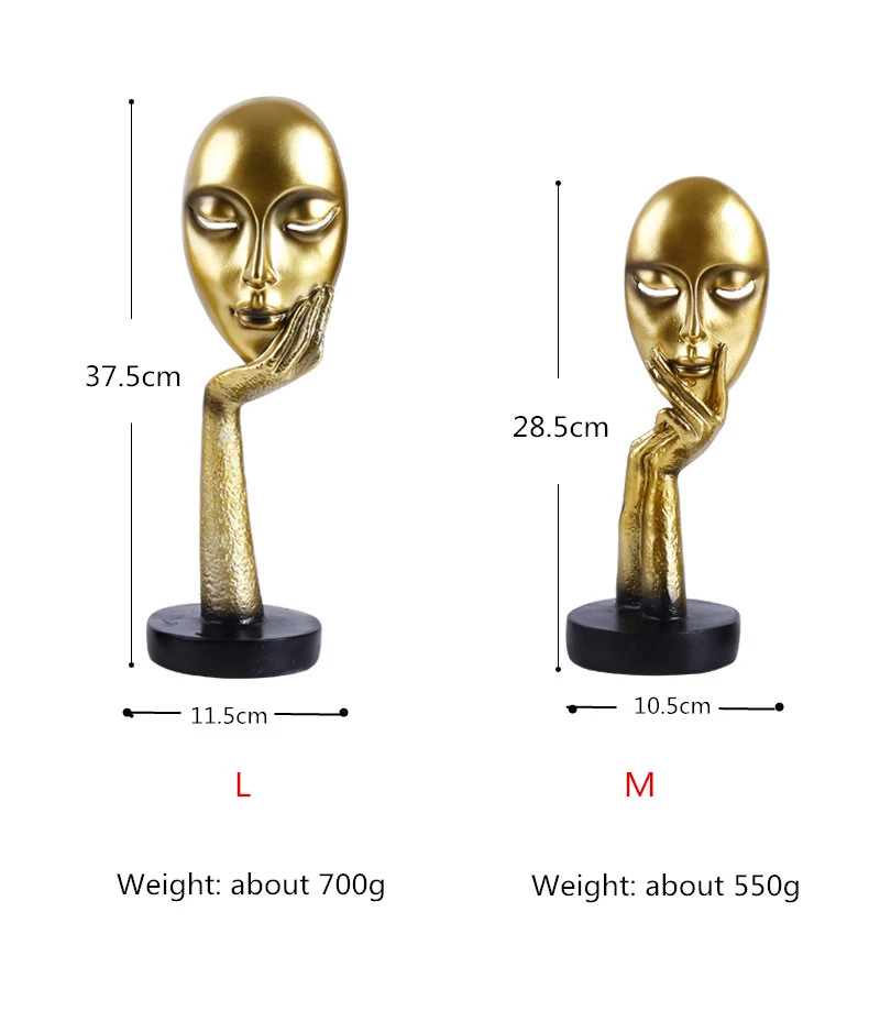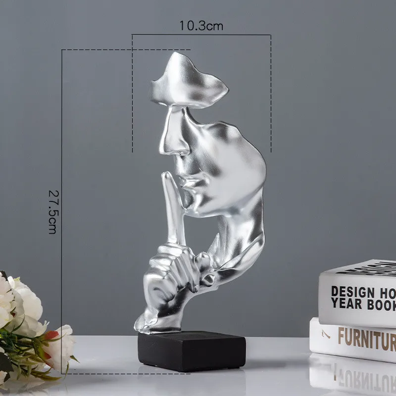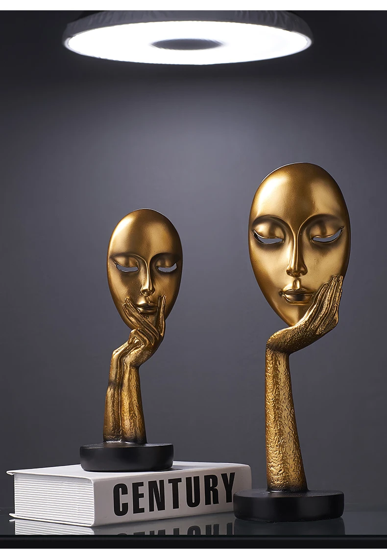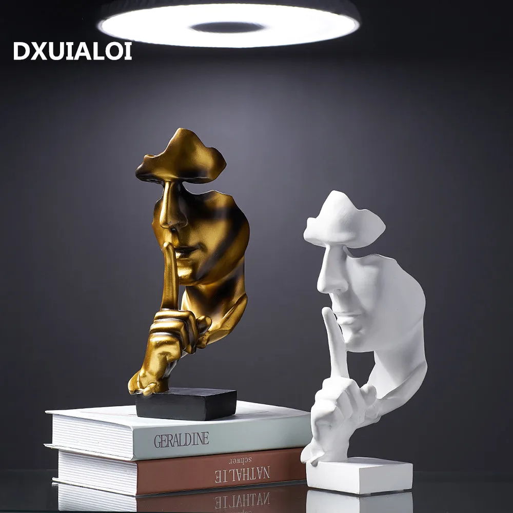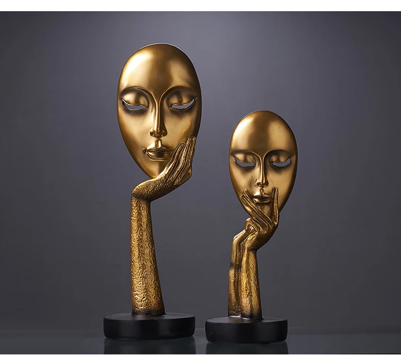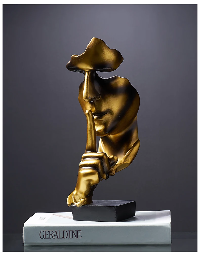 Аксессуары для украшения дома, золотая статуя тишины для украшения, статуя человека, скульптура лица, абстрактное Африканское украшение