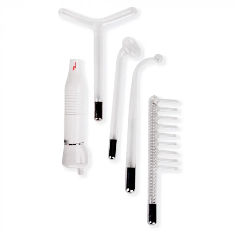 Аппарат для дарсонвализации с 4 видами насадок. За счет воздействия импульсным током на ткани тела предотвращает и борется с целым рядом проблем: угревая сыпь и высыпания, перхоть, варикозное расширение вен, мигрень, невралгия, артрит.• Электроды в комплекте: капля (для точечного воздействия), грибок (для общих процедур), вилка (для лечения на руках, ногах, шее), расческа (для лечения волос и кожи головы)• Работа от сети• Простое управлениеАппарат отлично подойдет для домашнего использования. Он не занимает много места, им легко пользоваться. Время одной процедуры зависит от состояния кожи и от вида заболевания. Подробная инструкция в комплекте позволит самостоятельно разобраться со всеми нюансами использования.