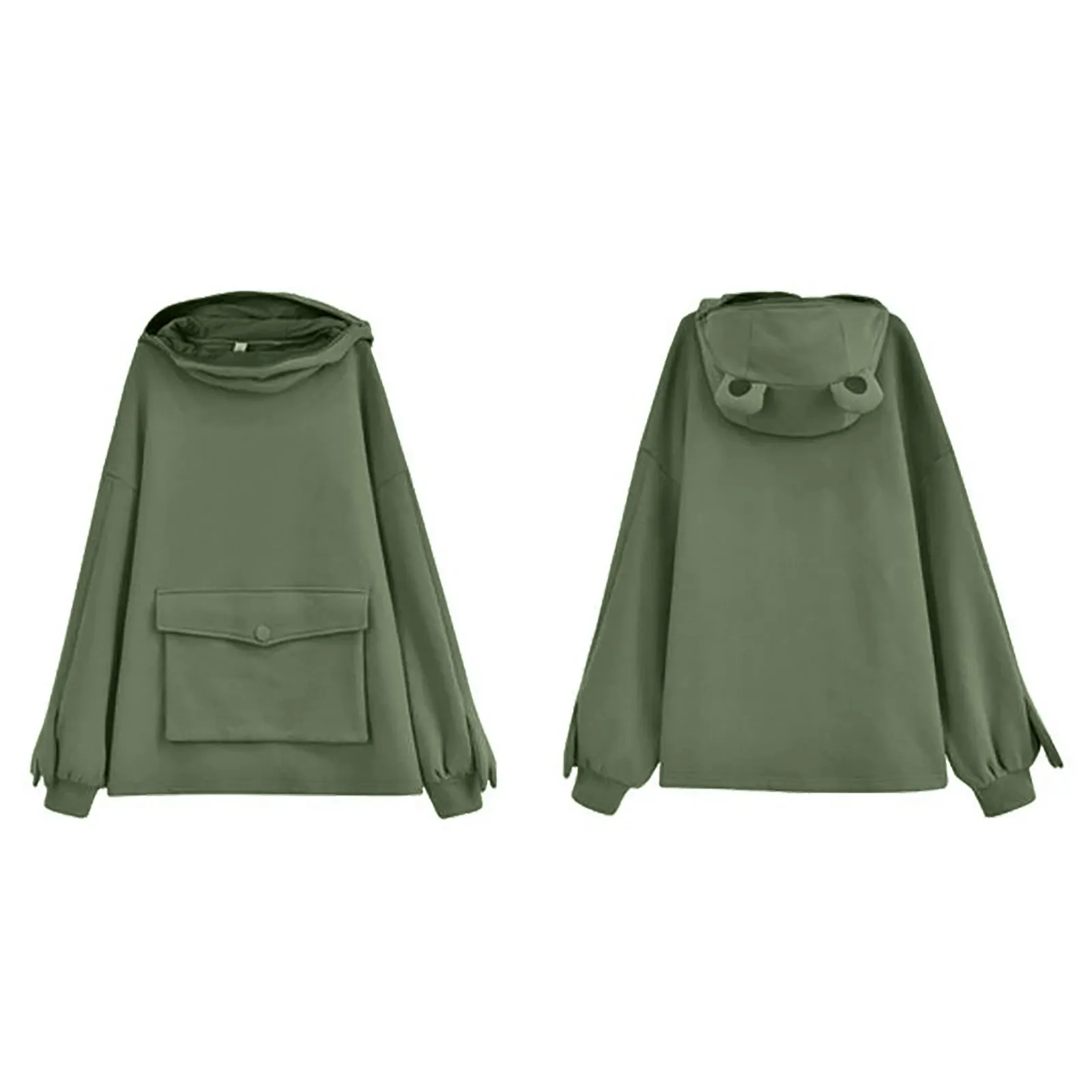 Женская толстовка с лягушкой, креативный пуловер с милым дизайном л...