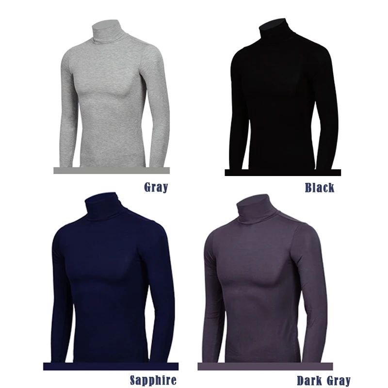Мужской теплый длинный рукав сжатия рубашки для детей с воротником под горло; Сезон Зима базовые Слои Топ пуловер легкая футболка JL