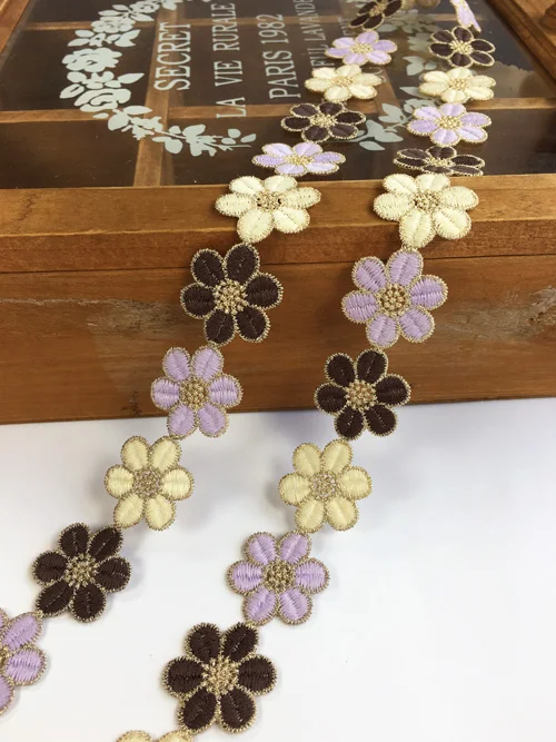 Лента гипюровая с вышивкой и цветами, 2,5 см