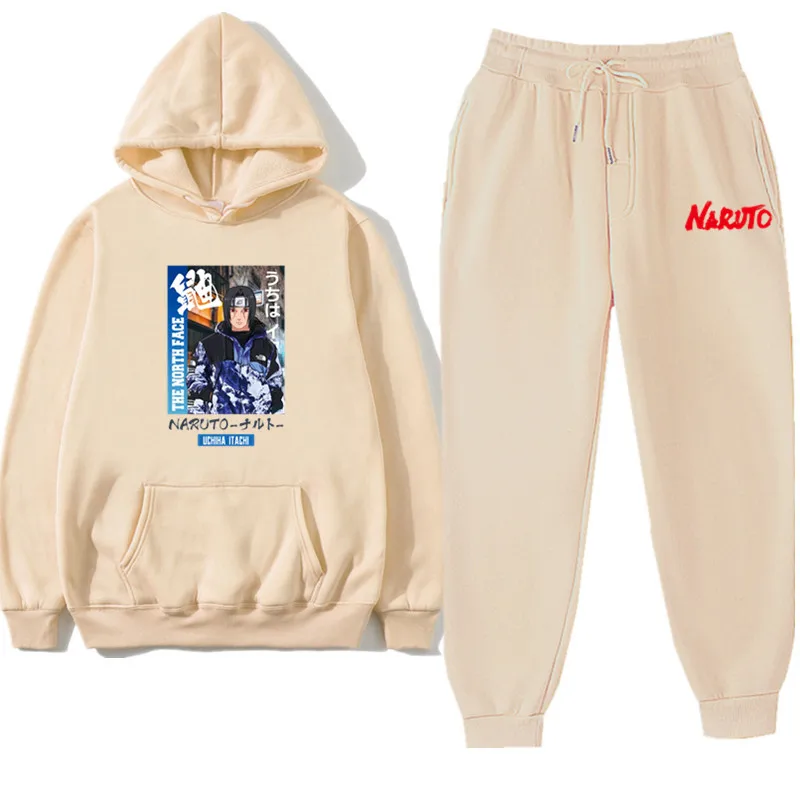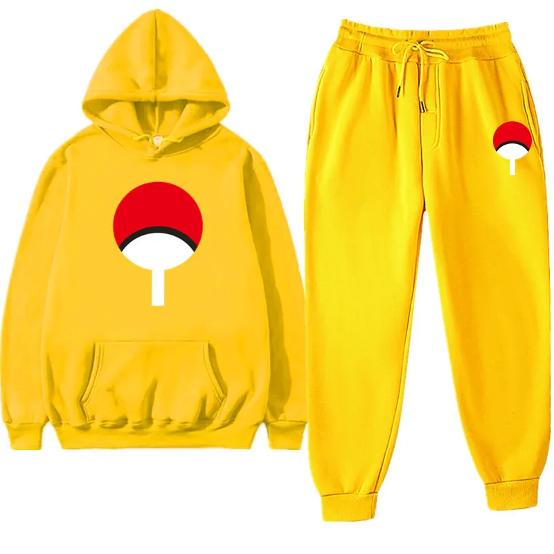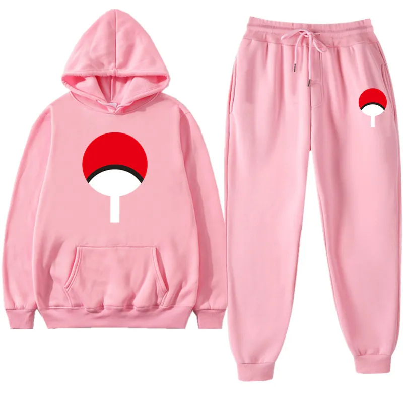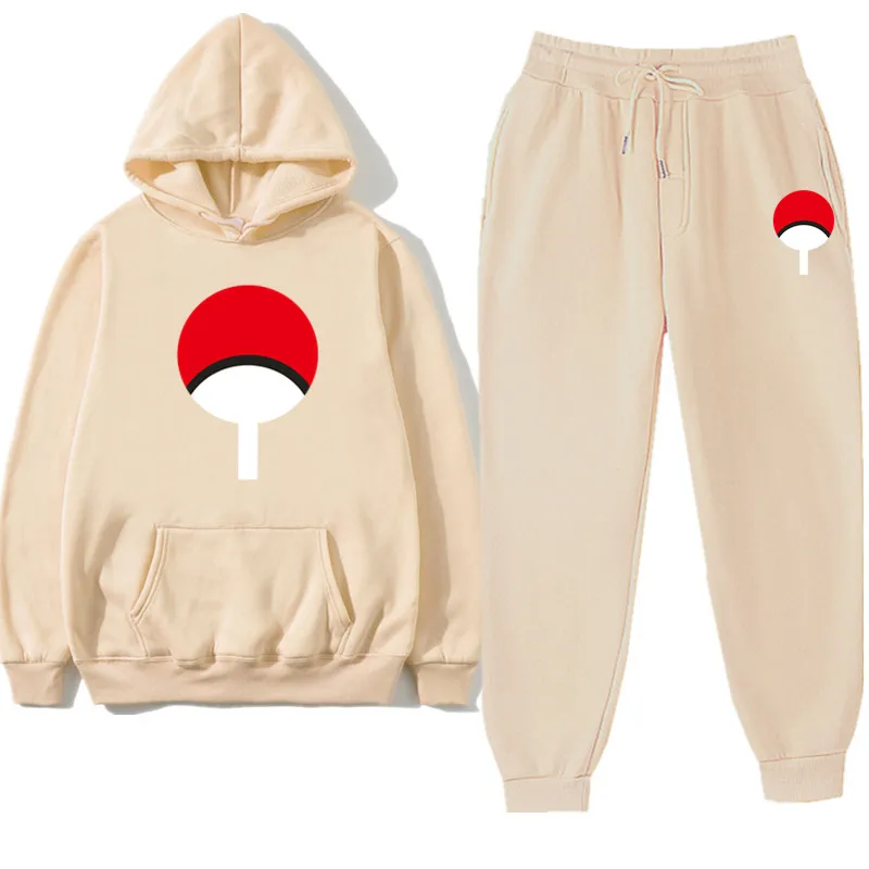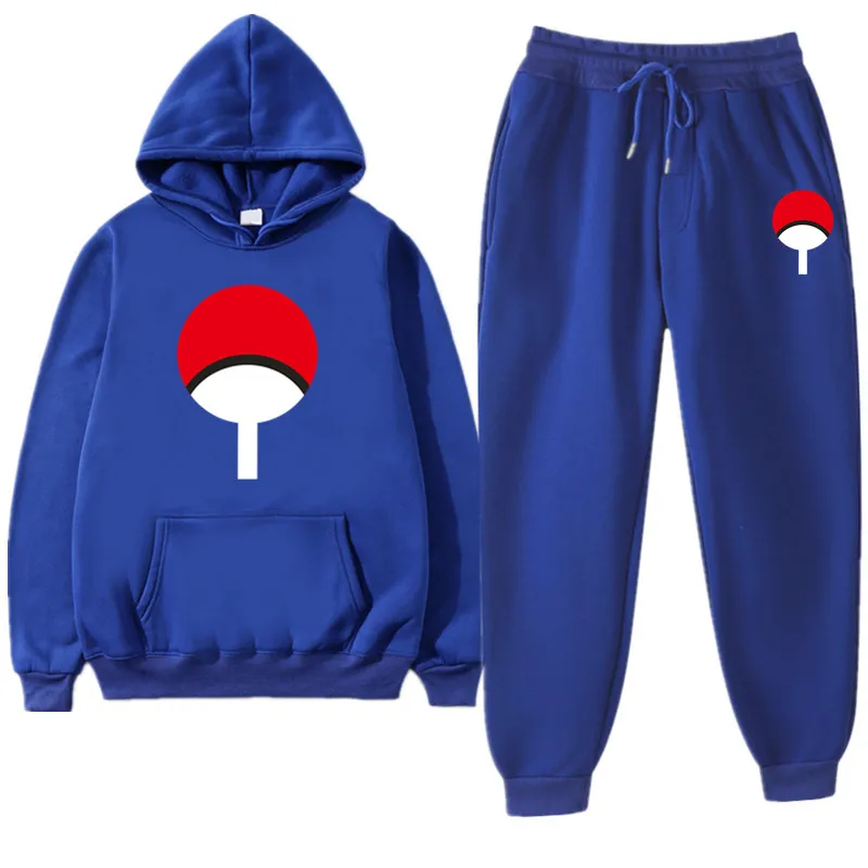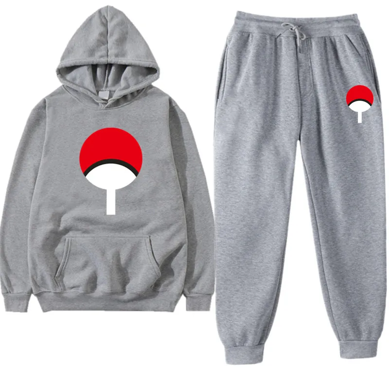 Комплект спортивной одежды для мужчин и женщин, толстовка с капюшоном и штаны в японском стиле аниме, повседневный спортивный костюм, спортивные штаны для бега в стиле Харадзюку