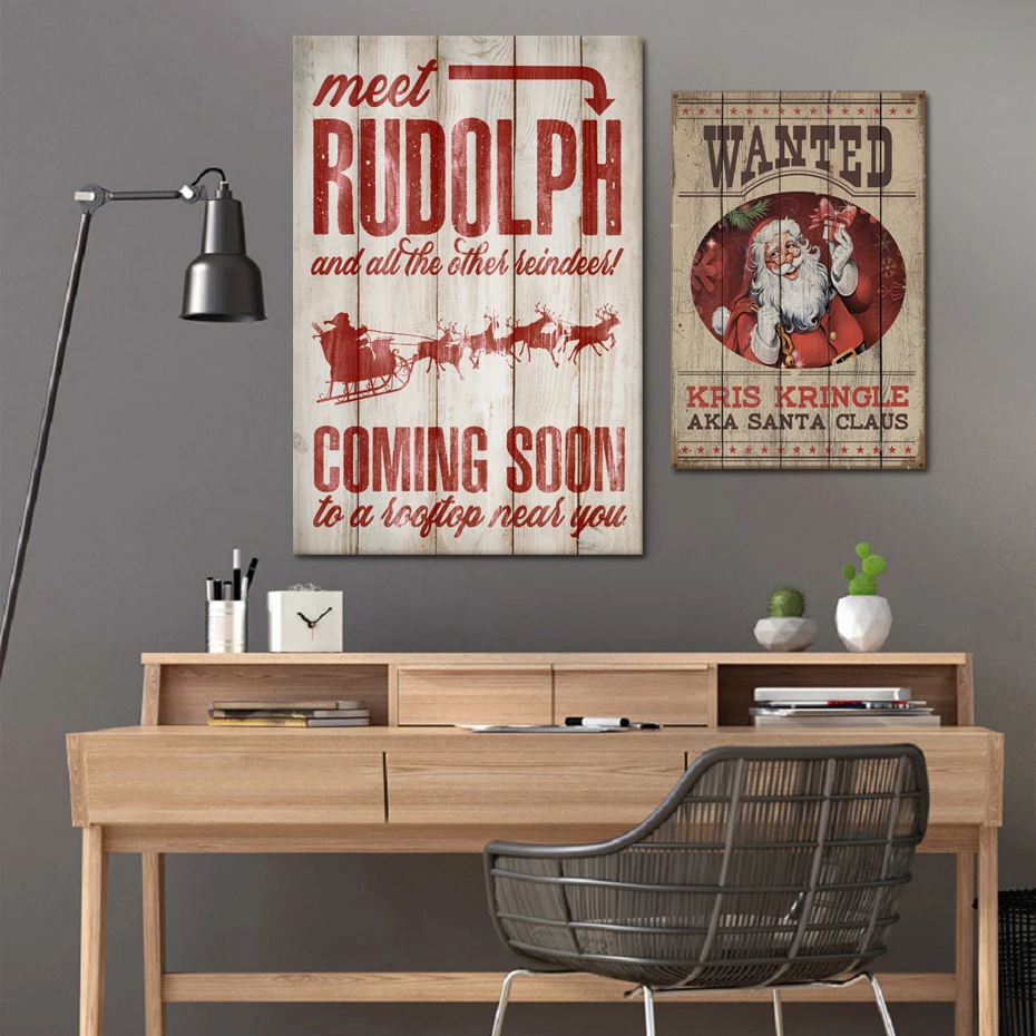 Винтажные рождественские настенные картины Санта-Клаус счастливый праздник Печать на холсте подарки для детей постеры для комнаты картины на холсте для детской комнаты настенный домашний декор