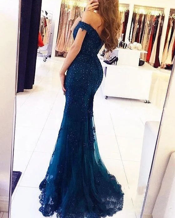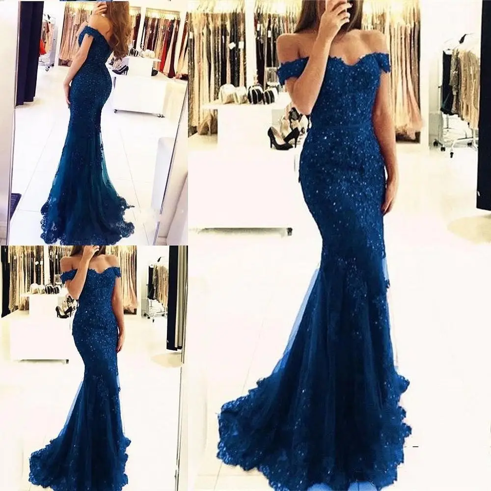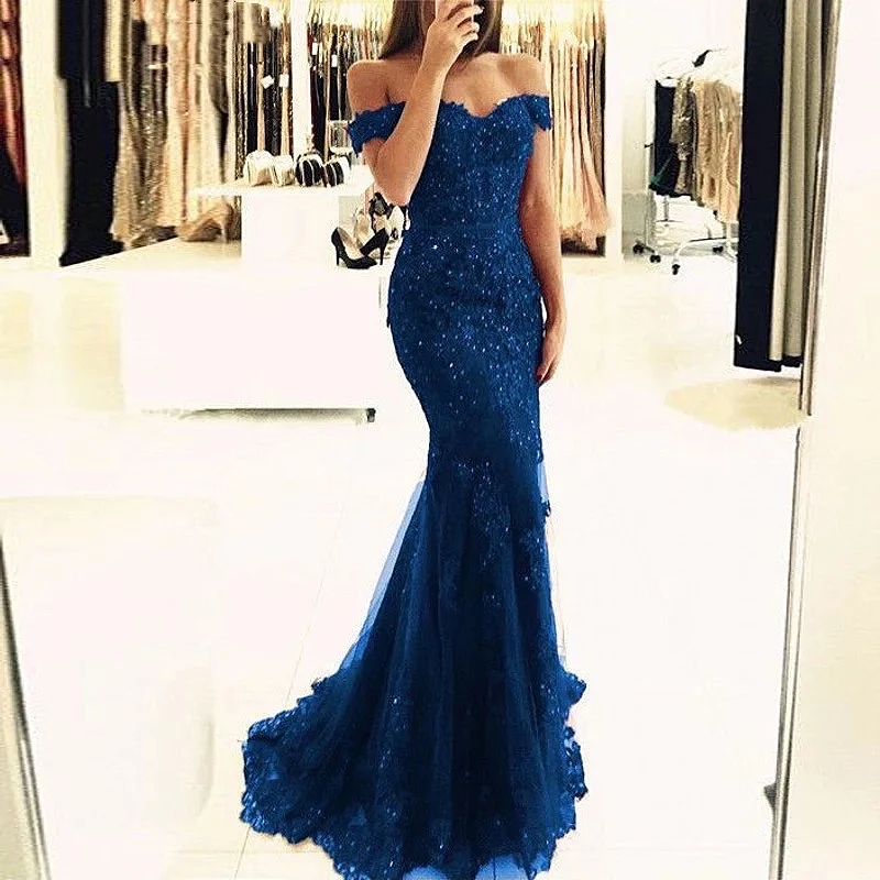 Женское вечернее платье с юбкой-годе, Элегантное синее платье с открытыми плечами и бусинами, лето 2022