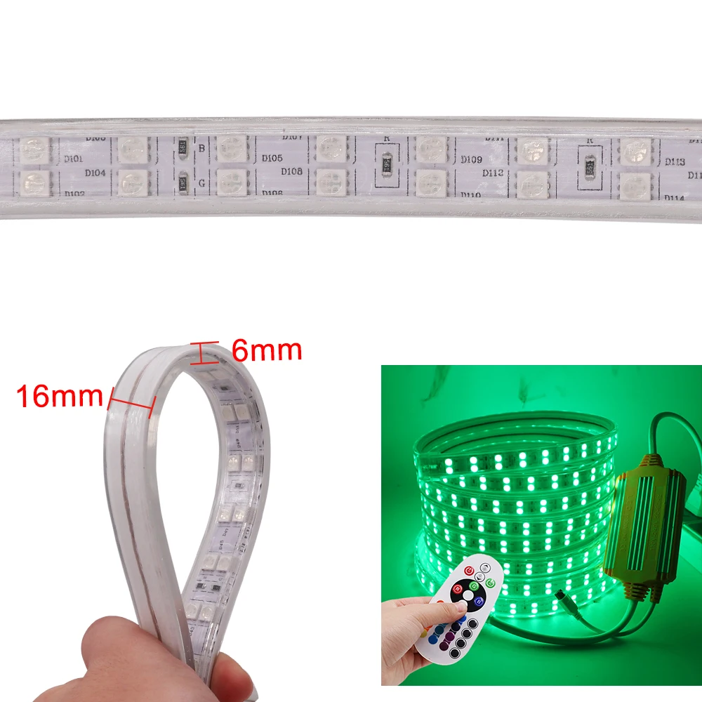 120 светодиодныйМ 5050 светодиодный светильник RGB 220 В 24key с дистанционным управлением двухрядный EU Kit Водонепроницаемый гибкий светодиодный домашний декор