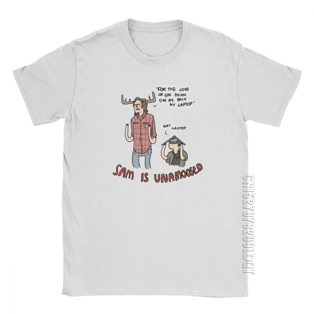 Сверхъестественная футболка Spn Brothers Man Sam Is Unamoosed, модная футболка с круглым вырезом, одежда из 100% хлопка, футболка, горячая распродажа