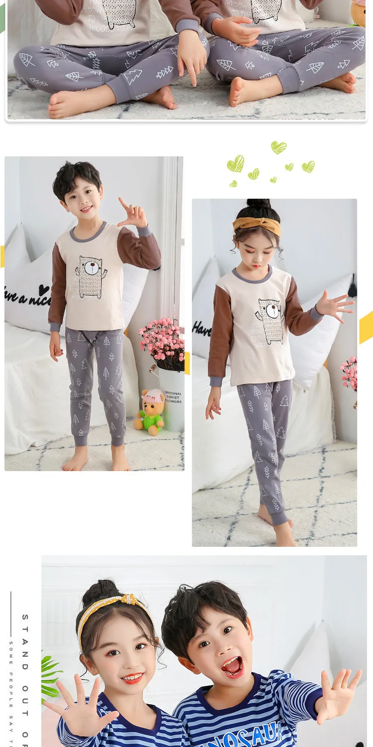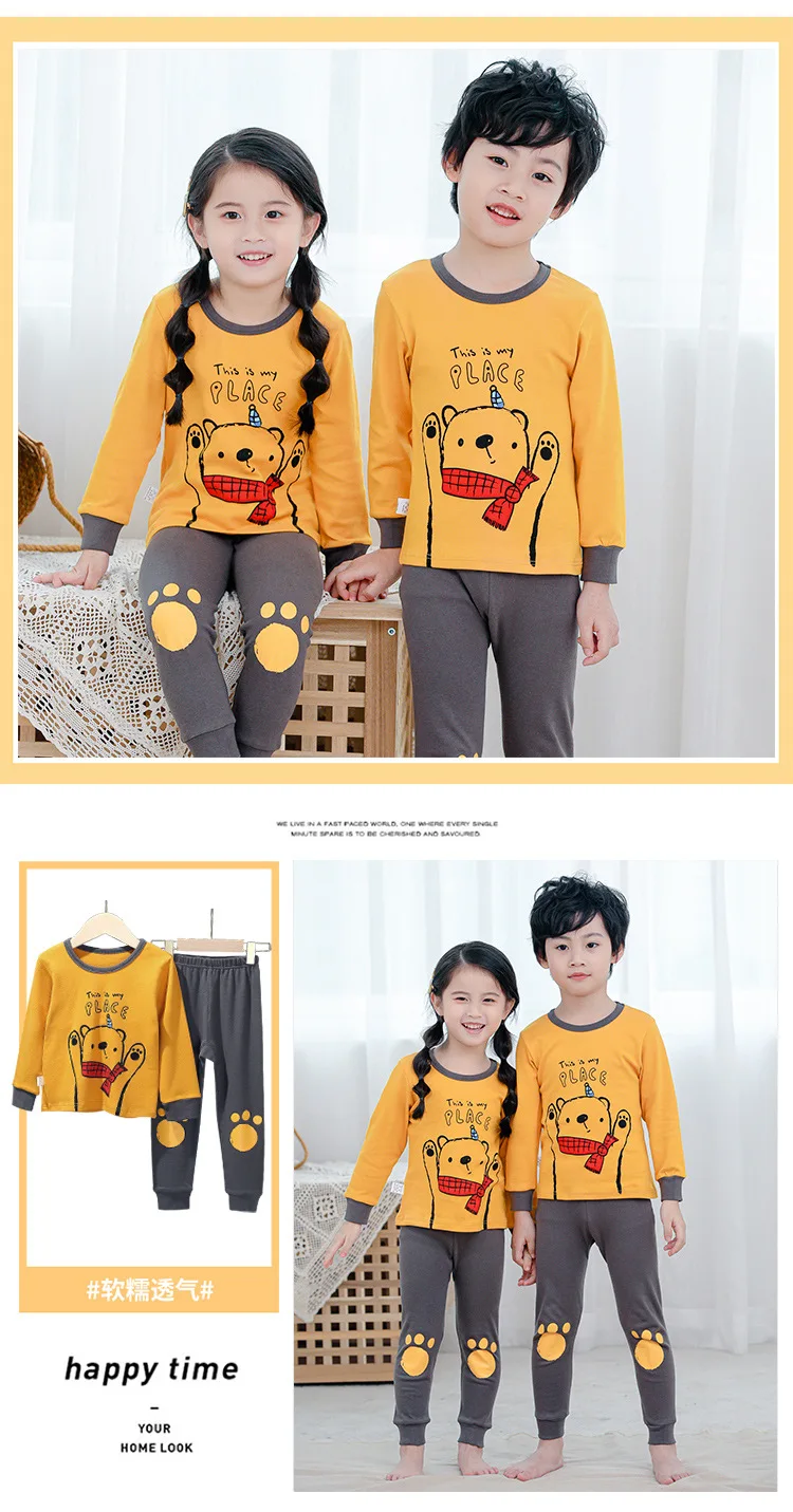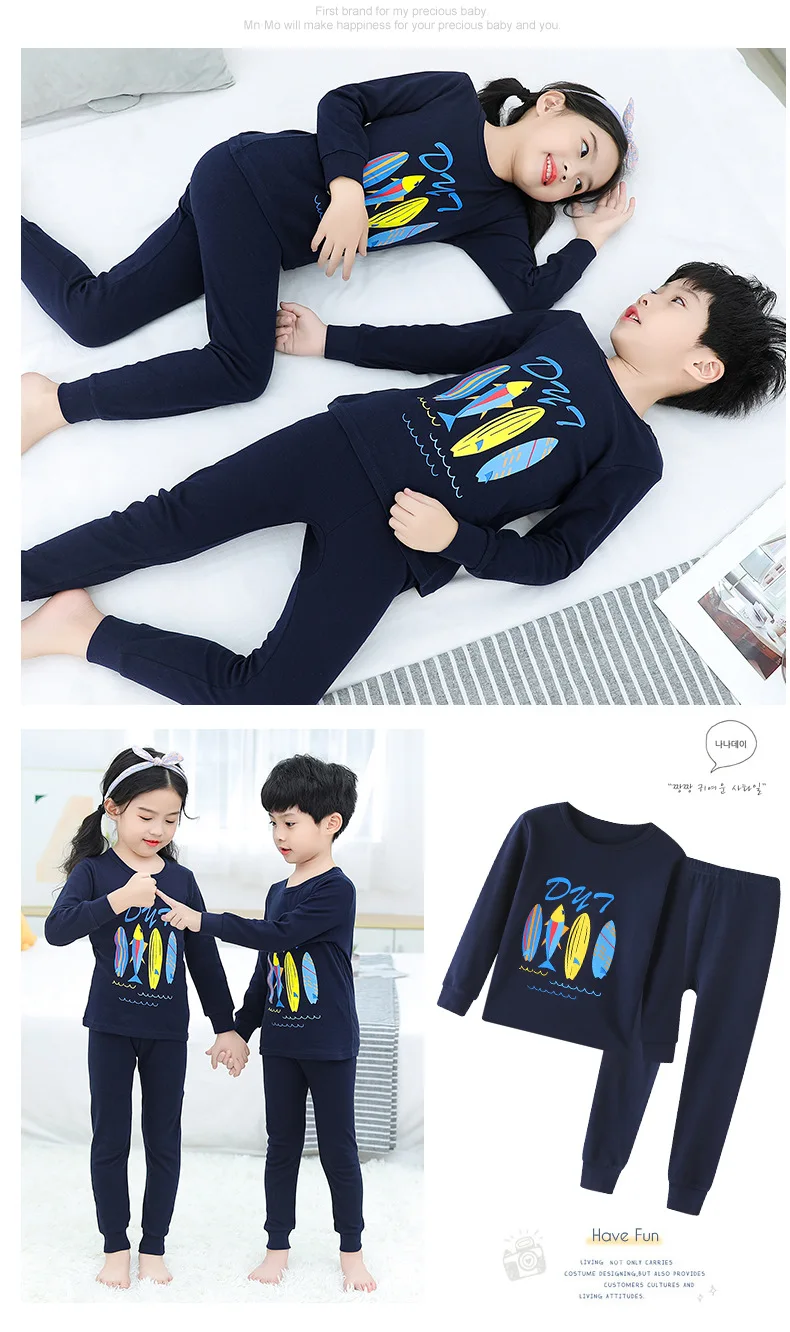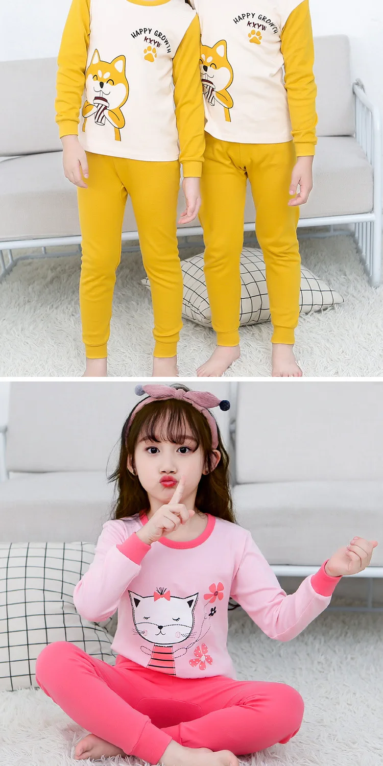 2021 Детские хлопковые Пижамные комплекты зимняя одежда для маленьких девочек и мальчиков мультяшная детская одежда для сна топы с длинным рукавом штаны Детский пижамный комплект