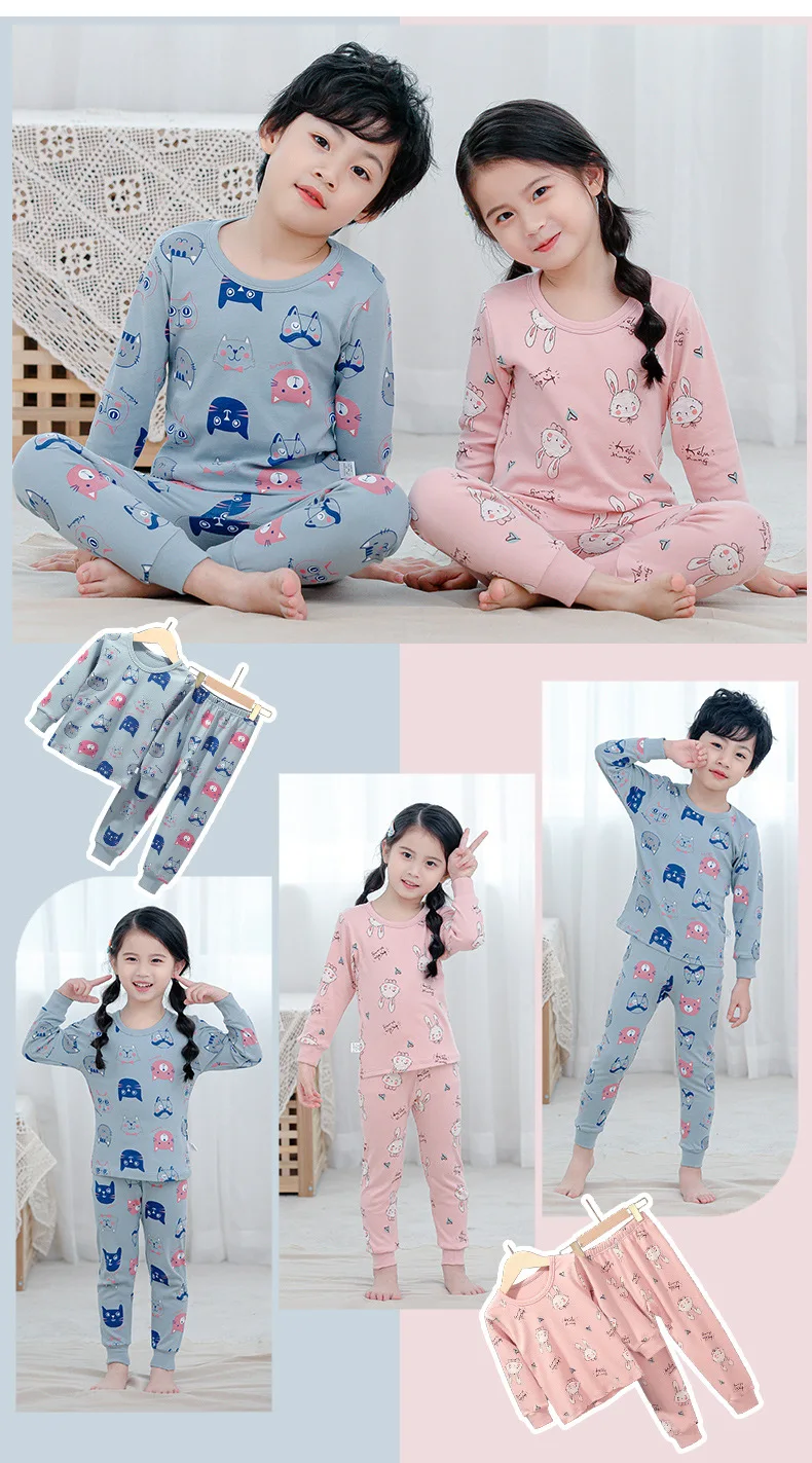 Пижама с длинным рукавом для мальчиков и девочек, хлопковая одежда ...