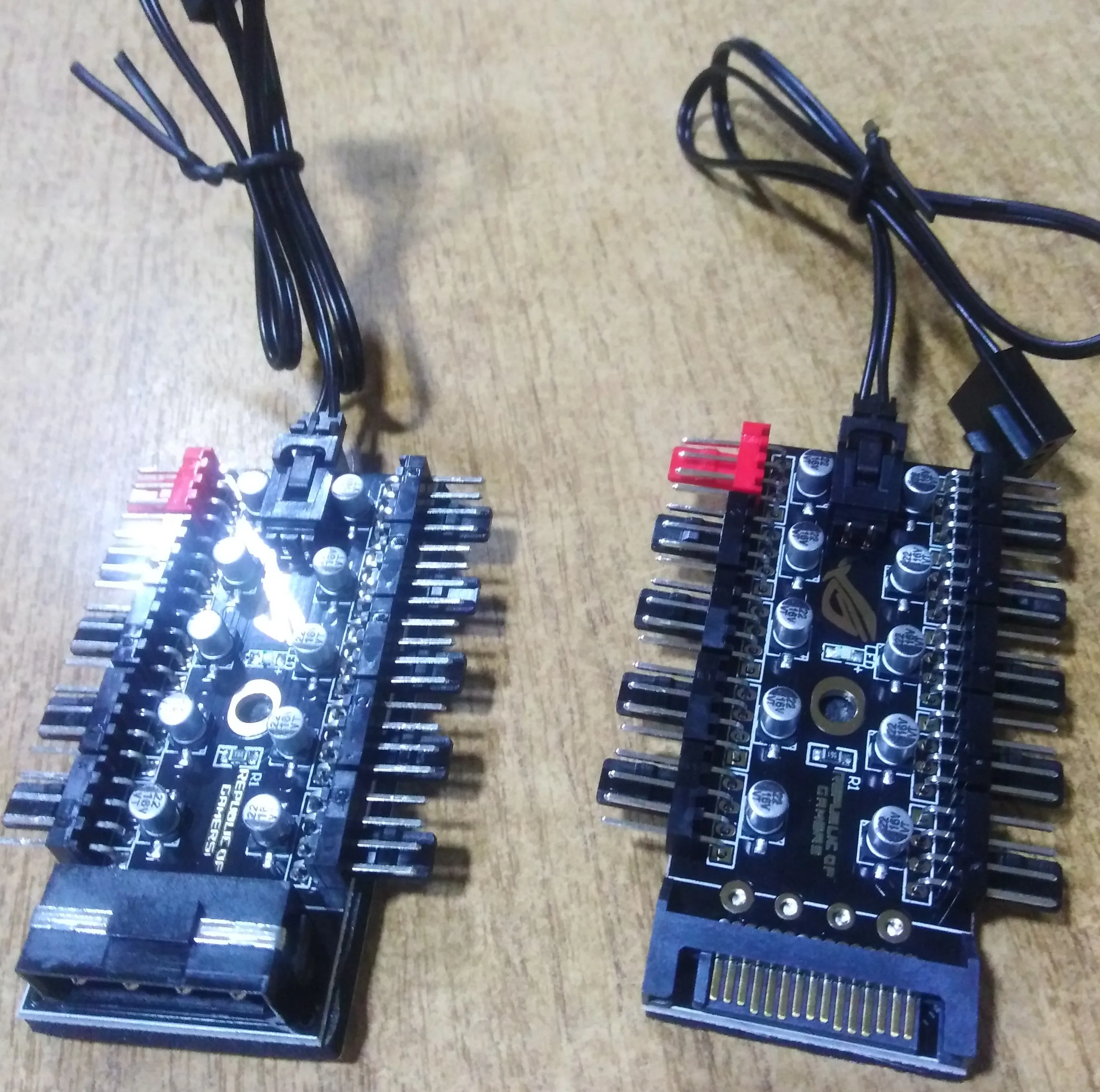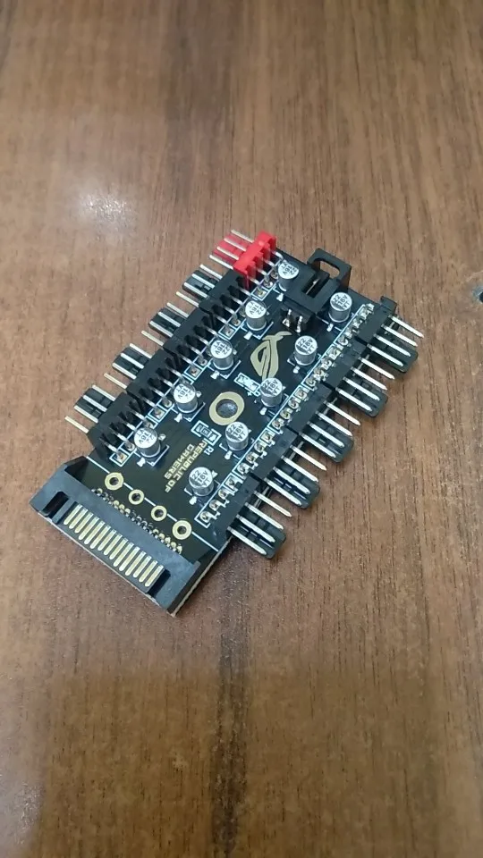 Отличный хаб, наконец-то проблема с нехваткой пинов для вертушек решена. 2-пиновый выход хаба соединил с разъемом кулера процессора на материнке, сам кулер подключил к красному разъёму, остальные вертушки распихал куда провода дотянулись. Регулировка оборотов работает отлично, все подключенные кулеры синхронно разгоняются при необходимости. Сделано аккуратно, пришло в пакете, но ничего не помялось. До Питера посылка ехала 3 недели.