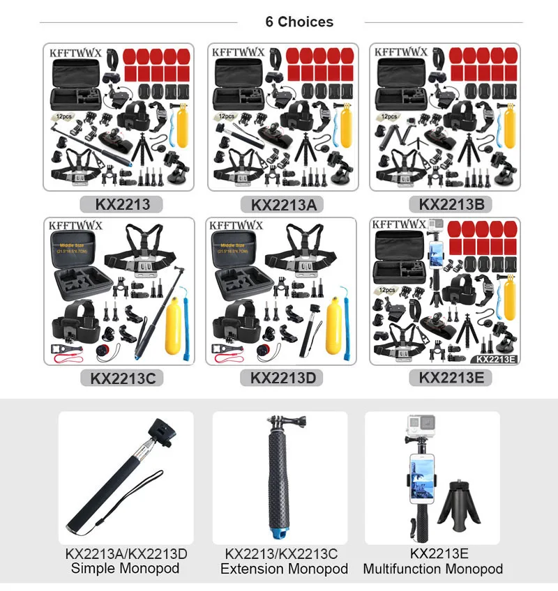 Набор аксессуаров KFFTWWX для экшн-Камеры Gopro Hero 10, 9, 8, 7, 6, 5, 4, 3 Black Max, Go Pro, Session YI 4K, SJCAM SJ8 PRO, EKEN H9R, Osmo