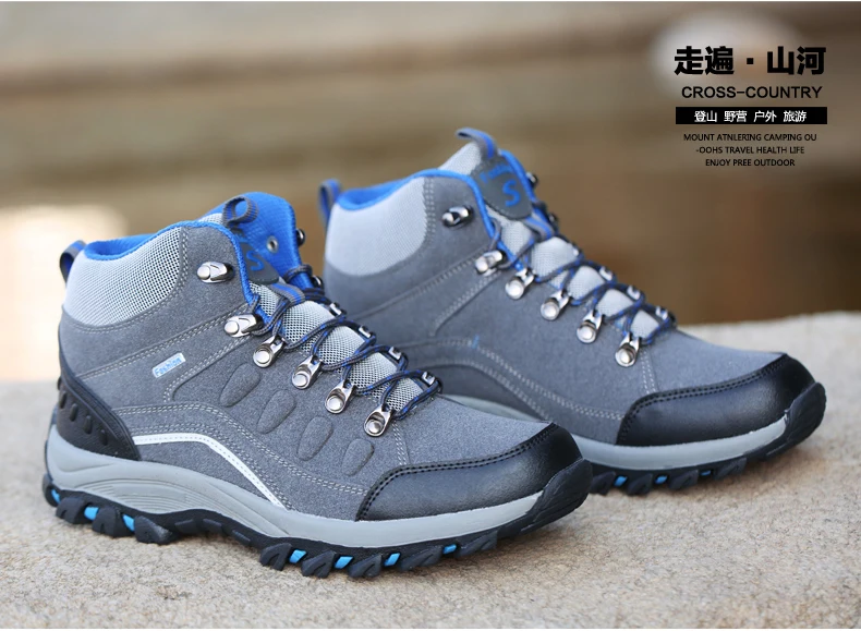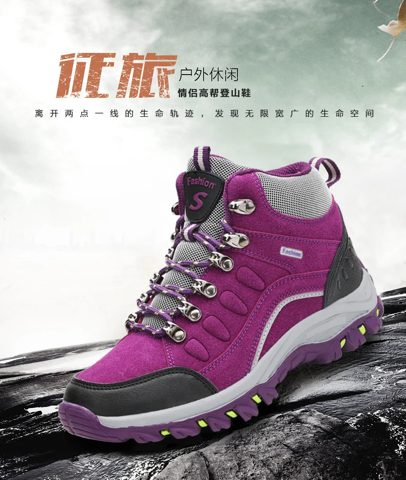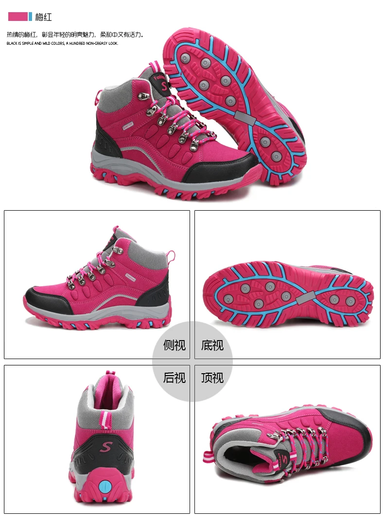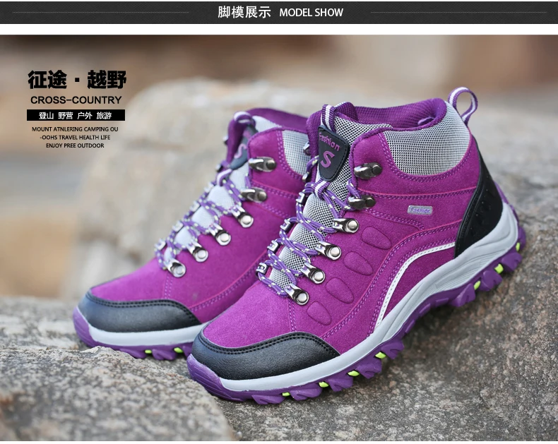 Зимние высокие женские походные водонепроницаемые треккинговые ботинки; Обувь для альпинизма; Спортивная обувь на резиновой подошве; Мужская обувь из нубука