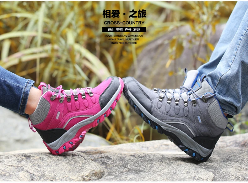 Зимние высокие женские походные водонепроницаемые треккинговые ботинки, обувь для альпинизма, спортивная обувь на резиновой подошве из нубука для мужчин и пар