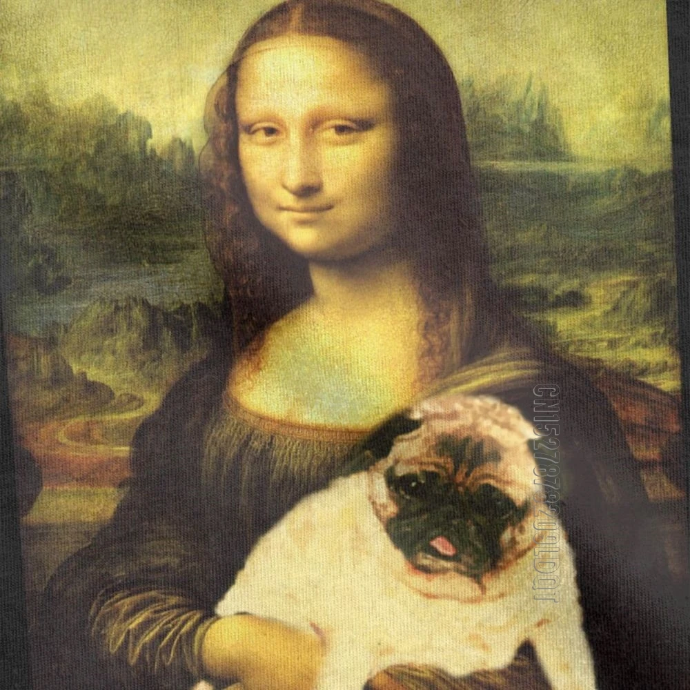 Футболки с принтом Человек Мона футболка Мона Лиза в виде мопса, Темный Лорд футболка в винтажном стиле Joconde короткий рукав; О до образный вырез одежда хлопковые нормальные