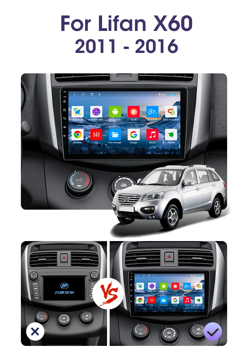 По сравнению с оригинальным автомобилем, экран больше, цвета более визуальные, и он поддерживает просмотр с нескольких углов. Новая Рама изготовлена по оригинальному автомобилю, который идеально сочетается с вашим автомобилем и легко устанавливается.