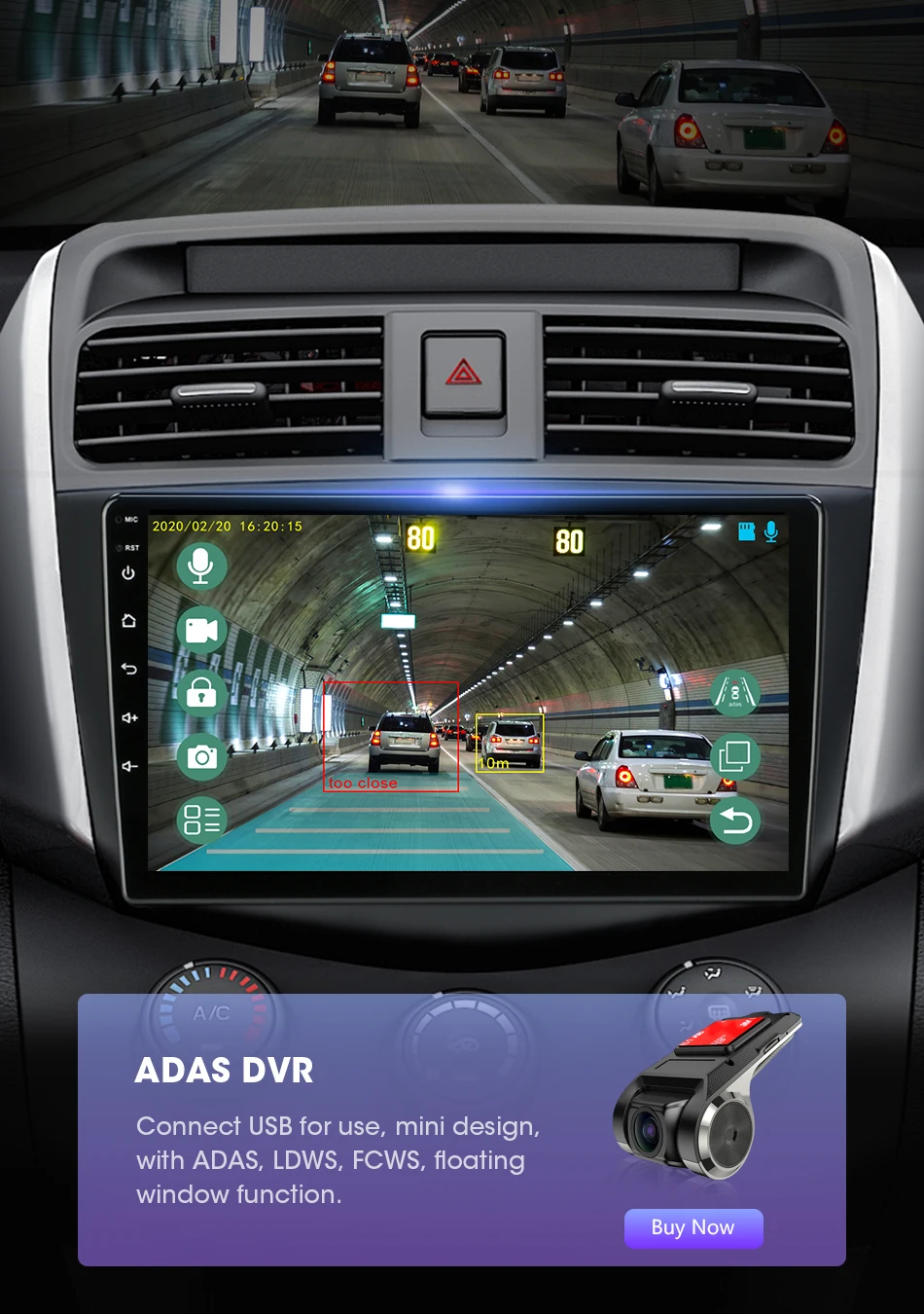 Поддерживает подключение к ADAS DVR. ADAS DVR имеет несколько встроенных технологий вспомогательного вождения, вставляя высококачественную карту памяти TF для записи каждого момента вождения.