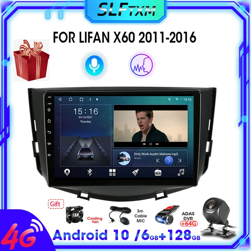 Автомагнитола на Android 10, 2 Din, мультимедийный видеопроигрыватель, навигация для Lifan X60 2011-2016, 2din, стерео-приемник, DVD-экран, AM