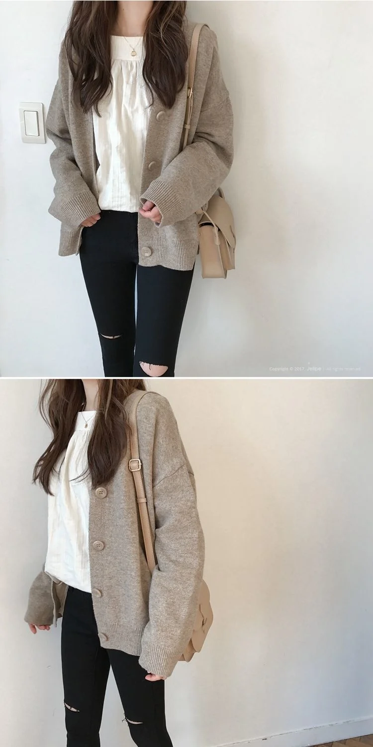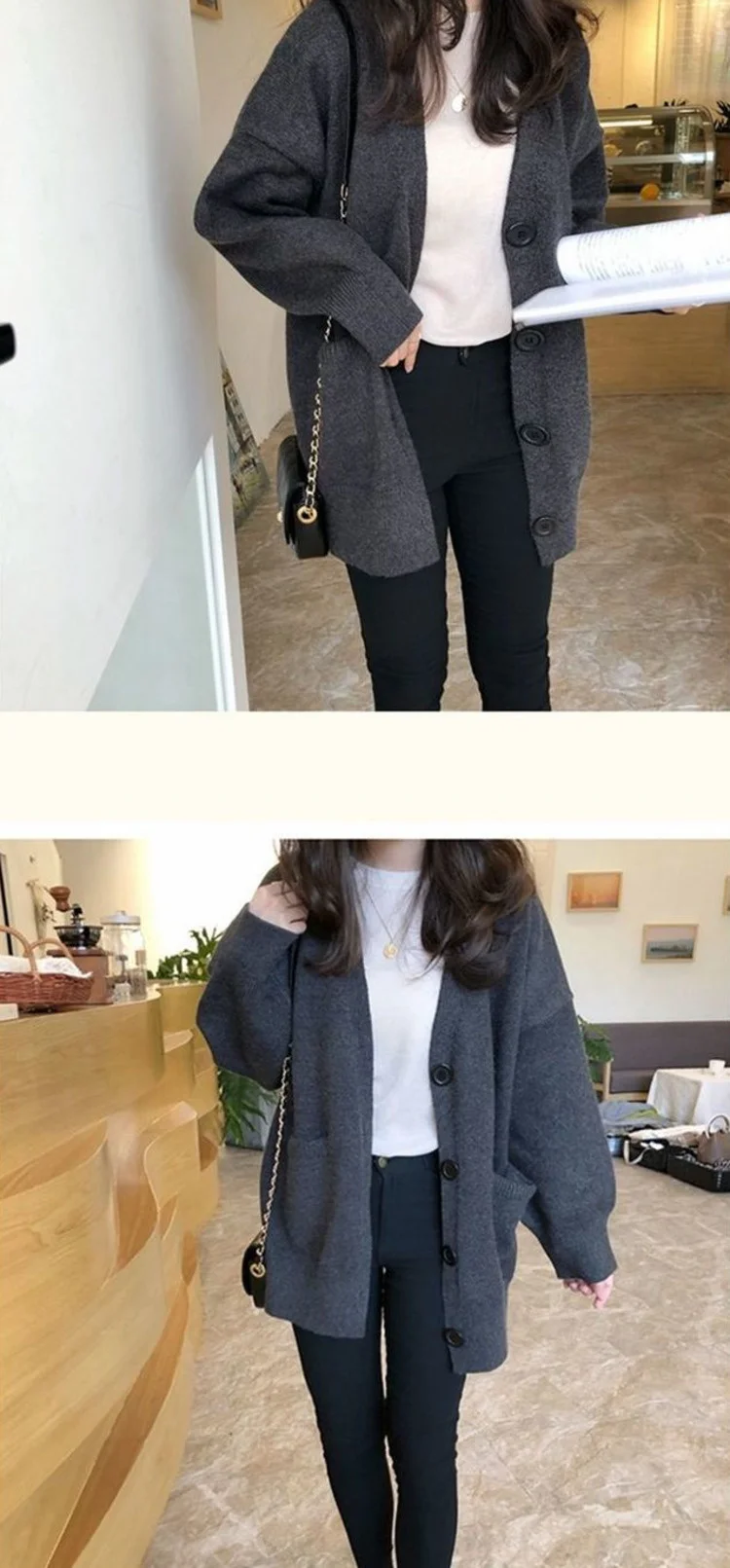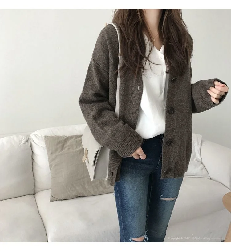 Женский вязаный кардиган с V-образным вырезом, свободного покроя