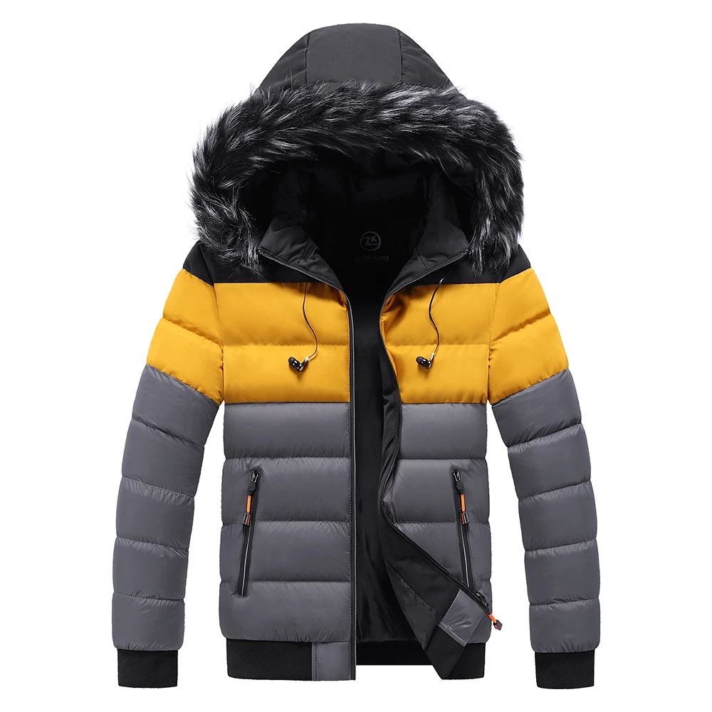 Мужская зимняя куртка с капюшоном и меховым воротником, Мужская пар...