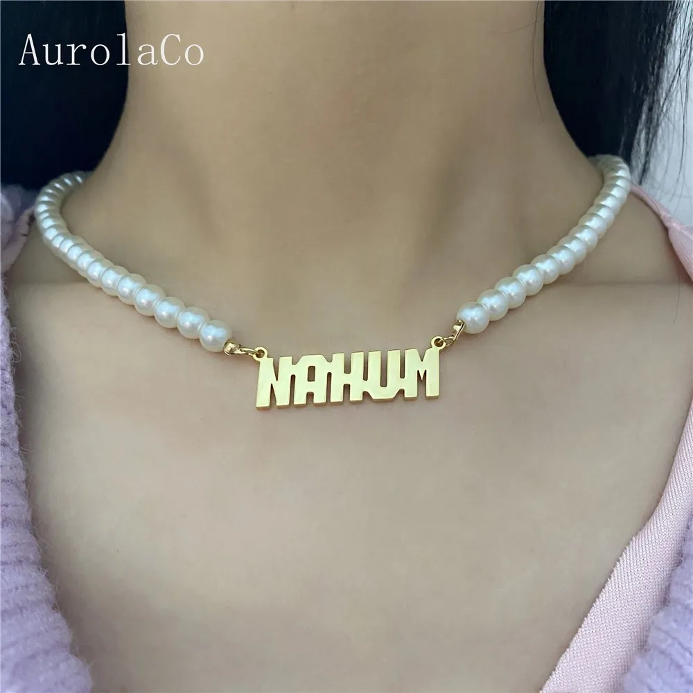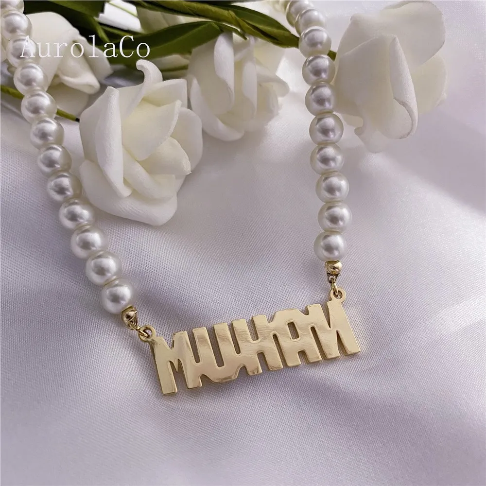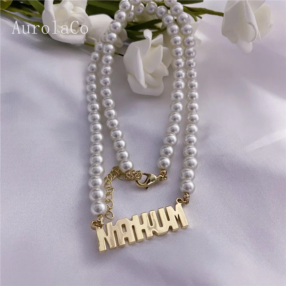 AurolaCo пользовательское имя ожерелье, жемчужное ожерелье из нержа...