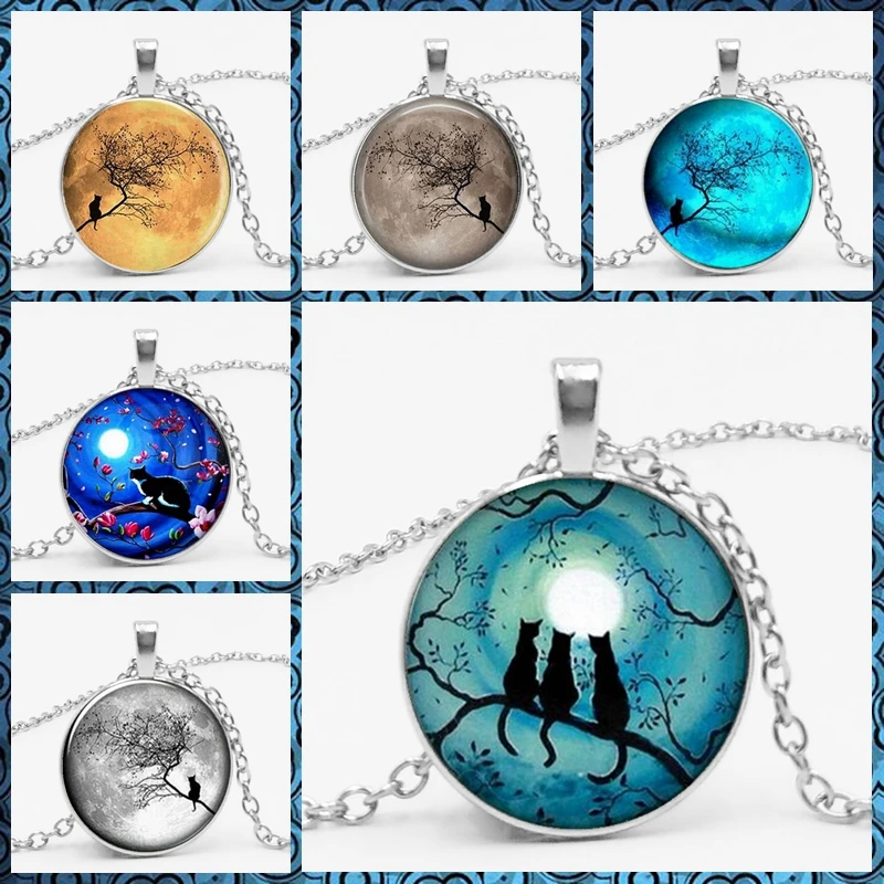 Новейшее ожерелье Kaboqin из стекла, 3 цвета, 2018, круглая синяя Луна и стеклянное ожерелье, ожерелье со звездой, кошкой и кристаллами, Частный заказ