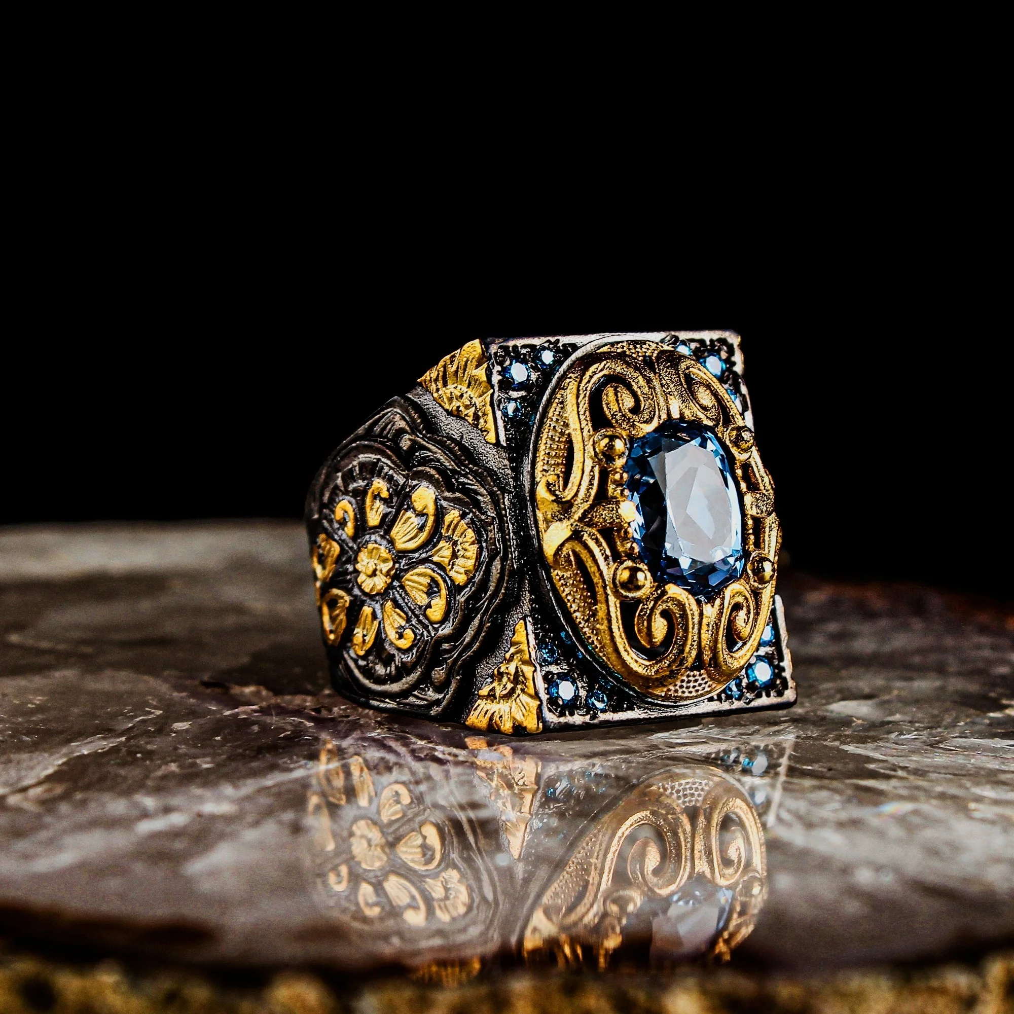 925 стерлингового серебра мужские кольца Высокое качество Голубой топаз драгоценный камень кольцо обручальное мужские кольца оригинальный турецкий стерлингового серебра ювелирные изделия мужские ювелирные кольца для женщин и мужчин кольца для женщин мужчин ювелирные изделия в стиле ретро для мужчин, ювелирные изделия, кольца для мужчин, кольцо для помолвки, свадьбы, модные Стиль для мужчин мужское кольцо, мусульманское кольцо, мусульманское кольцо