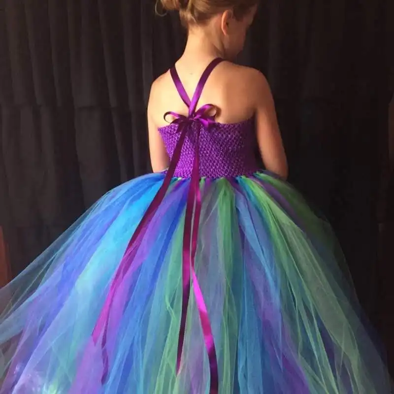 Платье-пачка для девочек с пурпурными павлиньими перьями, детское вязаное платье на бретельках, бальное платье с заколкой для волос, Детский костюм на день рождения, платье