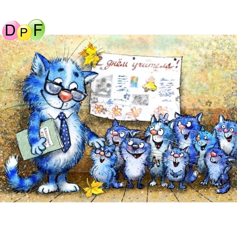Алмазная вышивка DPF сделай сам, мозаика из страз Кошачьи учения, набор для домашнего декора, квадратныекруглые алмазные вышивки с животными