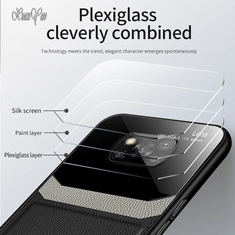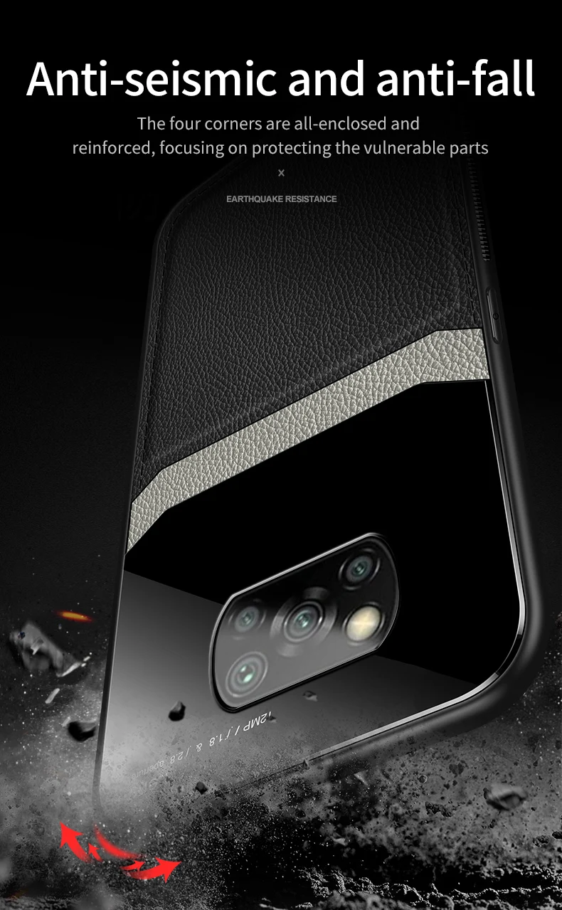 Чехол для Xiaomi Poco X3 NFC, ударопрочный кожаный стеклянный жестк...
