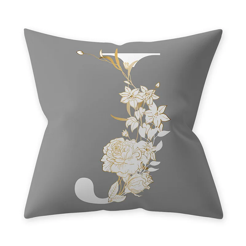 Декоративная серая подушка 45x45 с буквами, наволочка из полиэстера с белыми и желтыми цветами, скандинавский Декор для дома