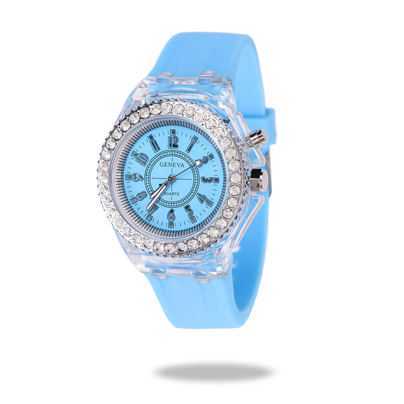 Женские кварцевые часы, со светодиодной подсветкой, цветные, спортивные, светящиеся, силиконовые